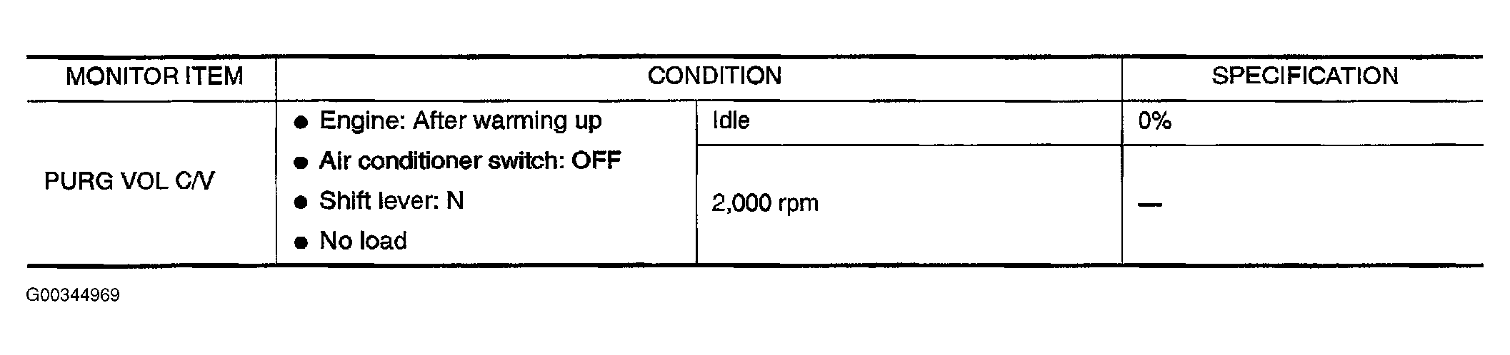 To identify PURGE VOL C/V specifications monitored by CONSULT-II, see Figure .