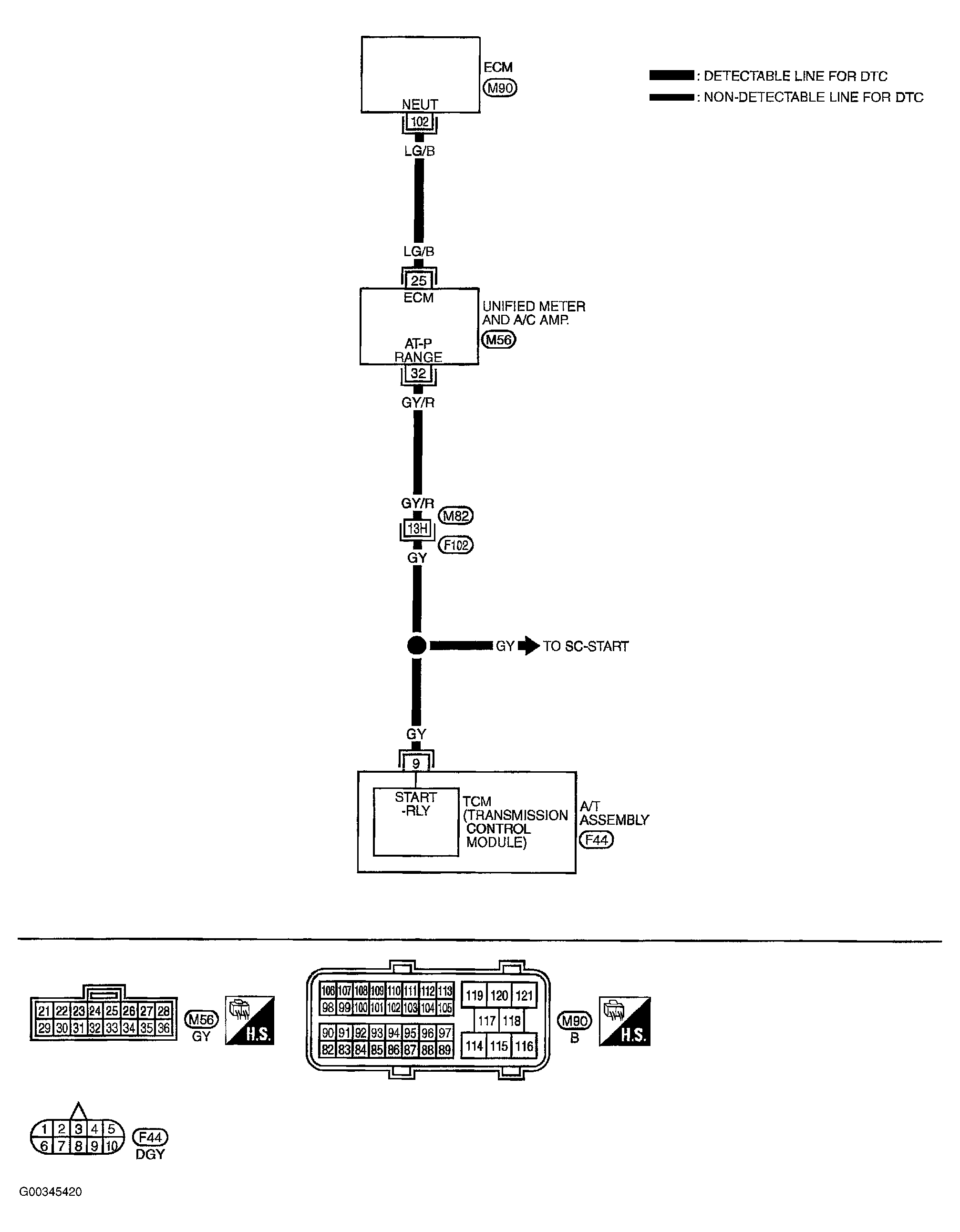 - Harness for open or short between TCM and unified meter and A/C amp."