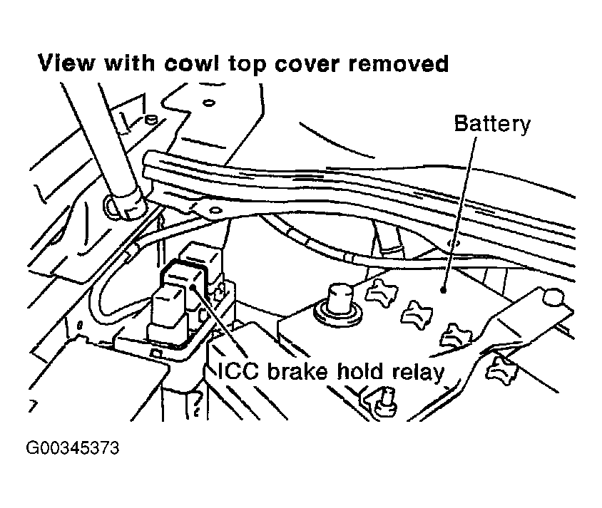 - Check harness continuity between ICC brake hold relay terminal 3 and ICC brake switch terminal 2. Refer to wiring diagram. See Figure