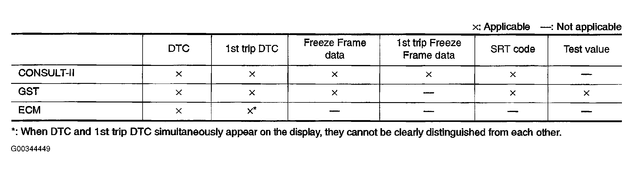 The malfunction indicator lamp (MIL) on the instrument panel lights up when the same malfunction is detected in two consecutive trips (Two trip detection logic), or when the ECM enters fail-safe mode. Refer to FAIL-SAFE CHART .