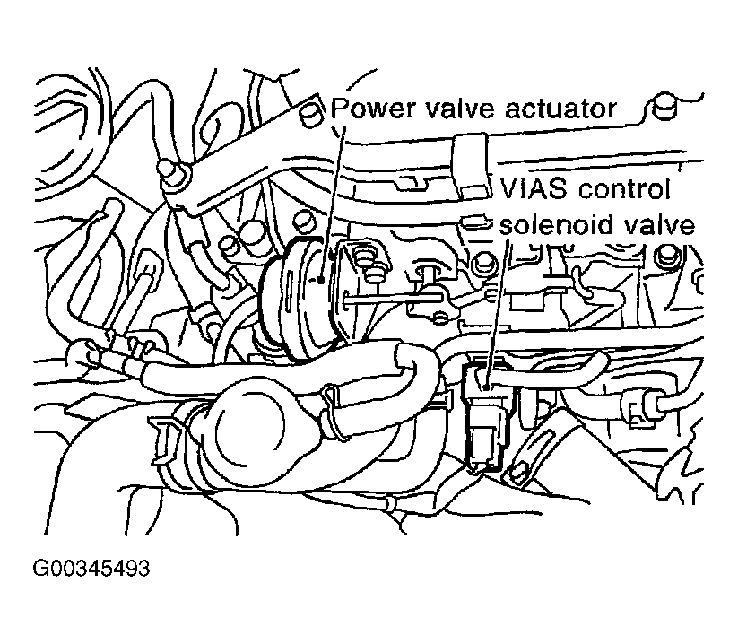 - Check hoses and tubes between intake manifold and power valve actuator for crack, clogging, improper connection or disconnection. Refer to Vacuum Hose Drawing .
