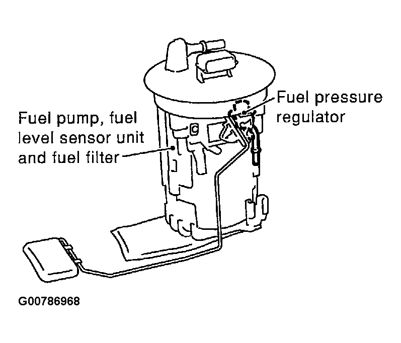 The fuel pump with a fuel damper is an in-tank type (the pump and damper are located in the fuel tank). See Figure .