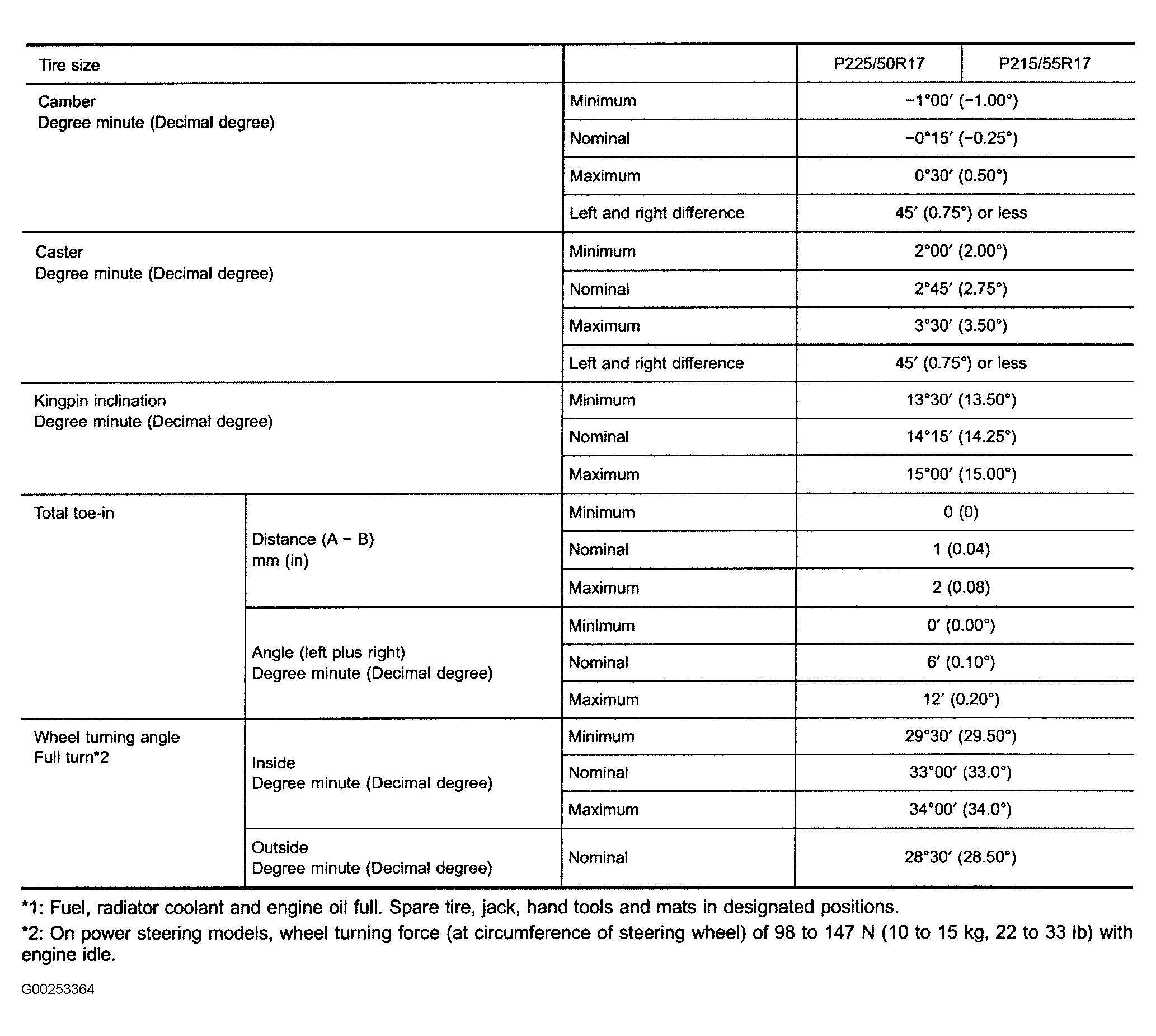 Fig 1: Front Wheel Alignment Specifications (I35)