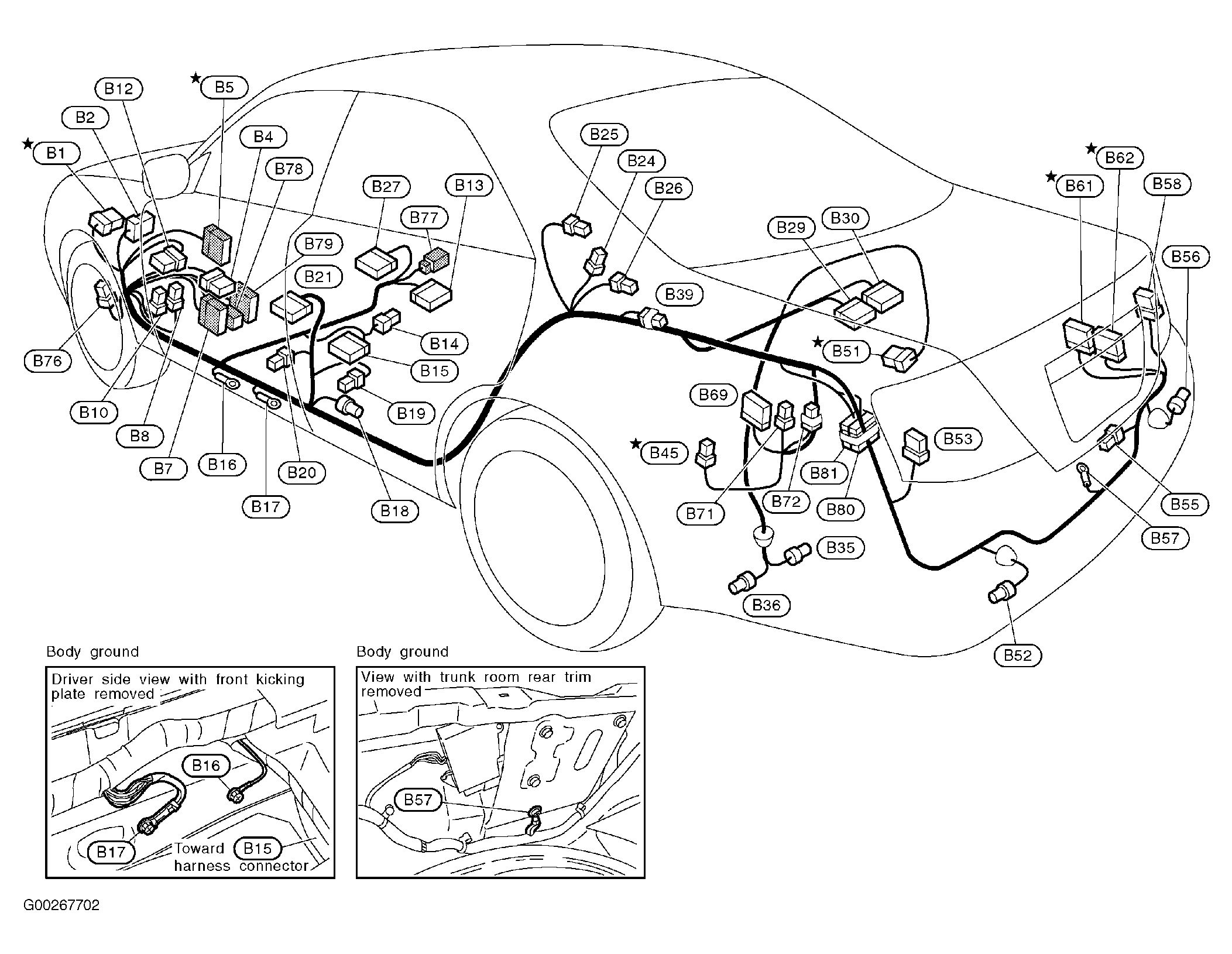 | Trunk Closure Control Unit | At rear center of luggage compartment. See Figure . |