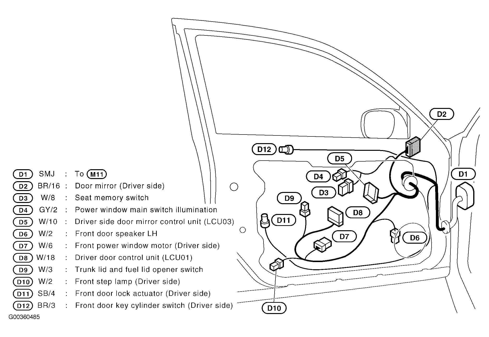 | Driver Door Control Unit (D8) | In driver's door. See Figure . |