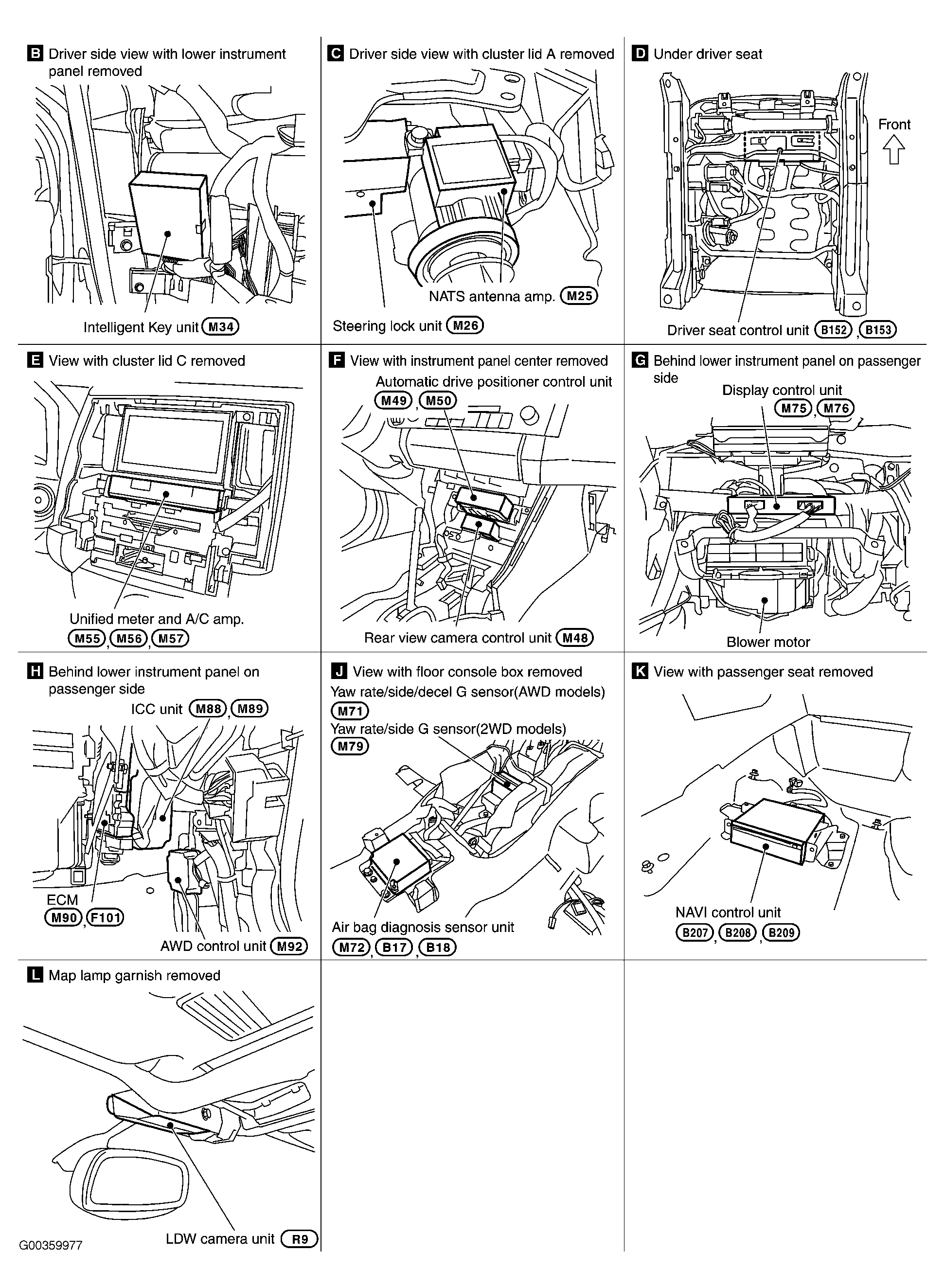 | NAVI Control Unit | Under front passenger seat. See Figure . |