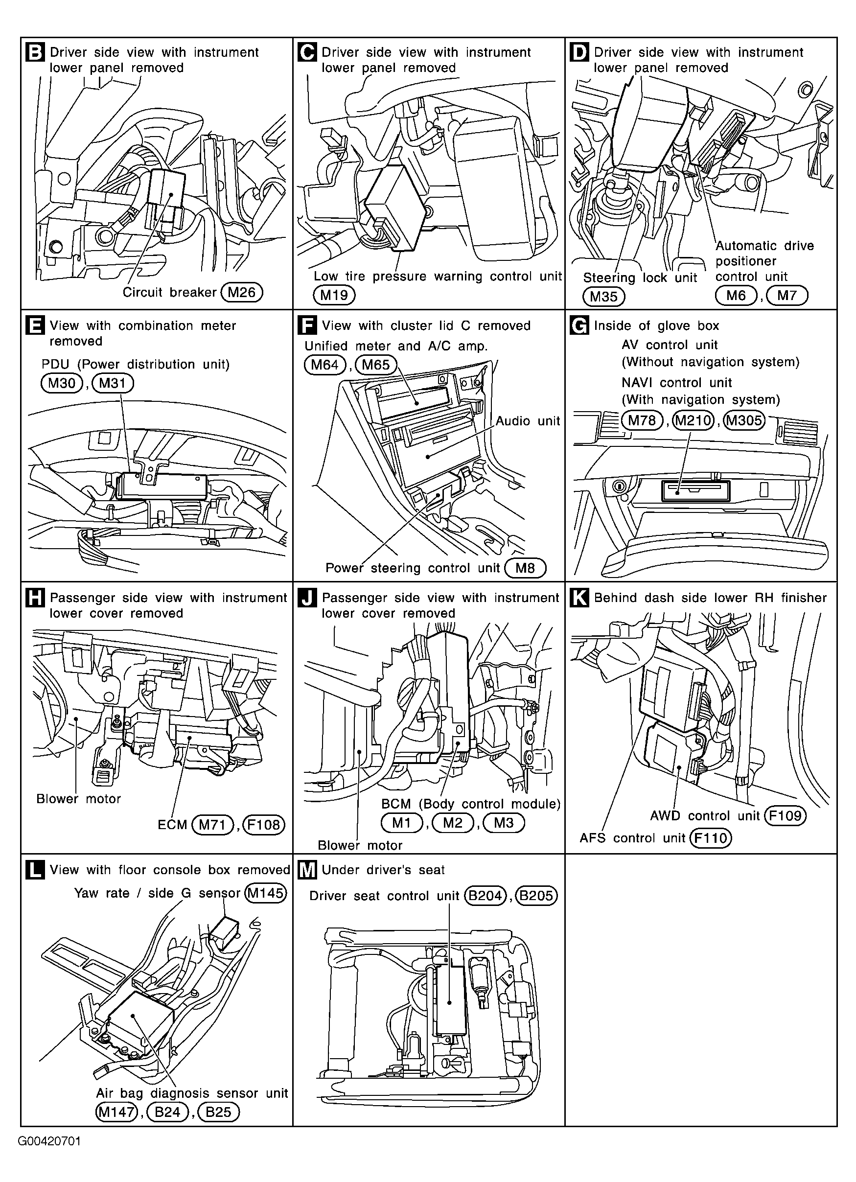 | NAVI Control Unit | Behind left side of dash. See Figure. |