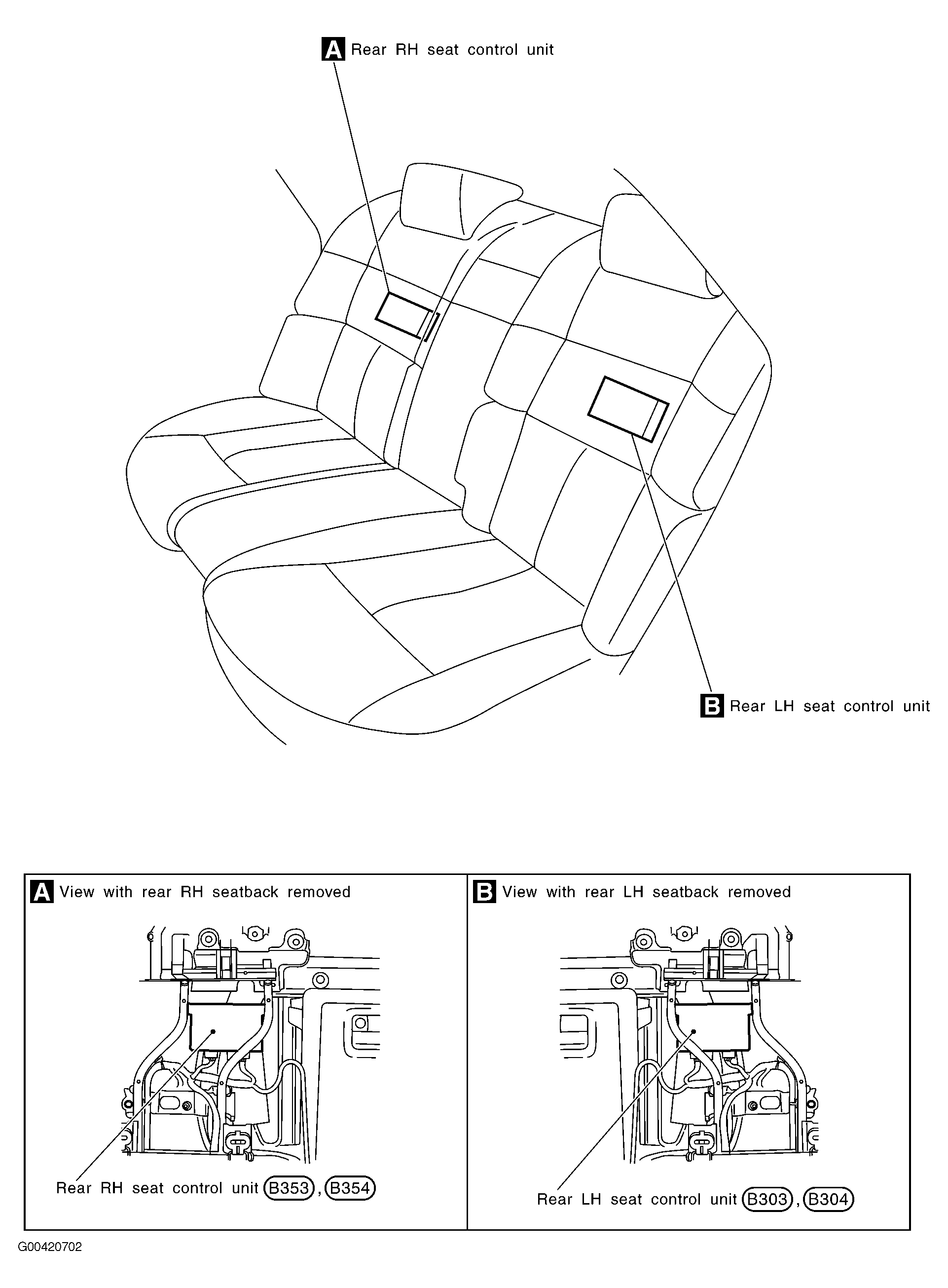 | Seat Control Unit (Right Rear) | Behind right rear seat. See Figure. |