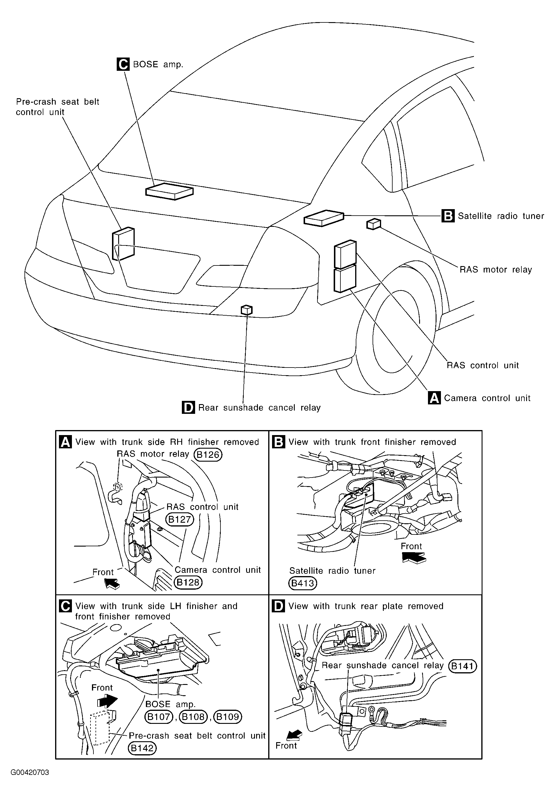 | Pre-Crash Seat Belt Control Unit | Left side of luggage compartment. See Figure. |