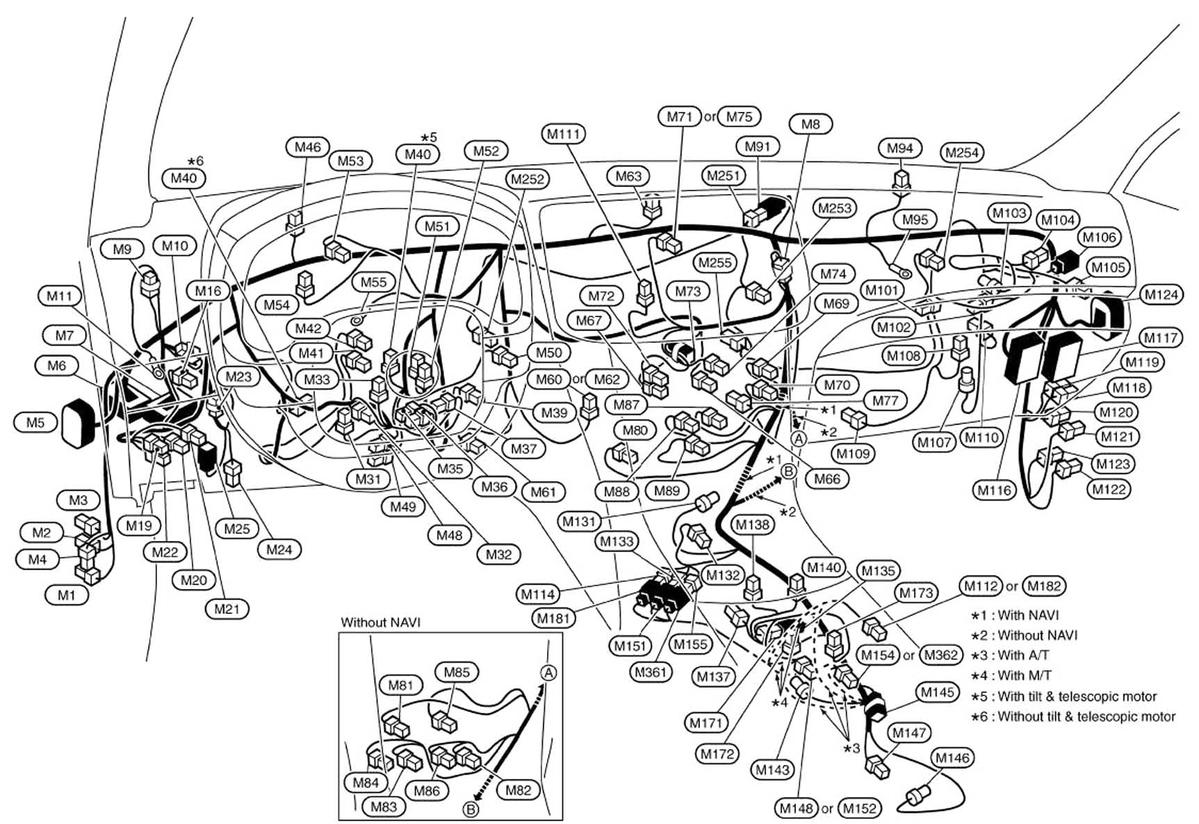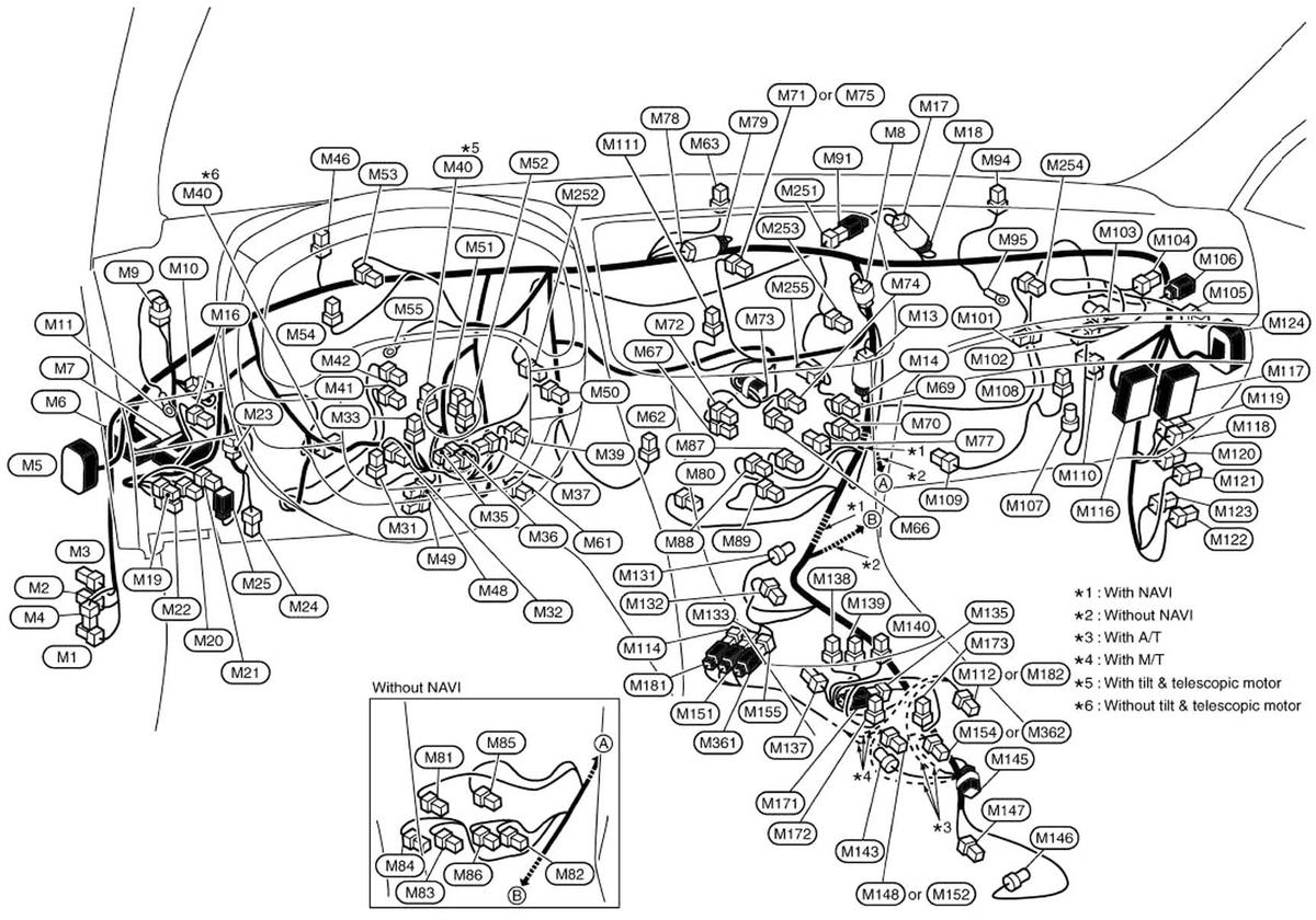 Pre-Crash Seat Belt Control Unit (Sedan) (M110) Behind right end of dash. See Figure.