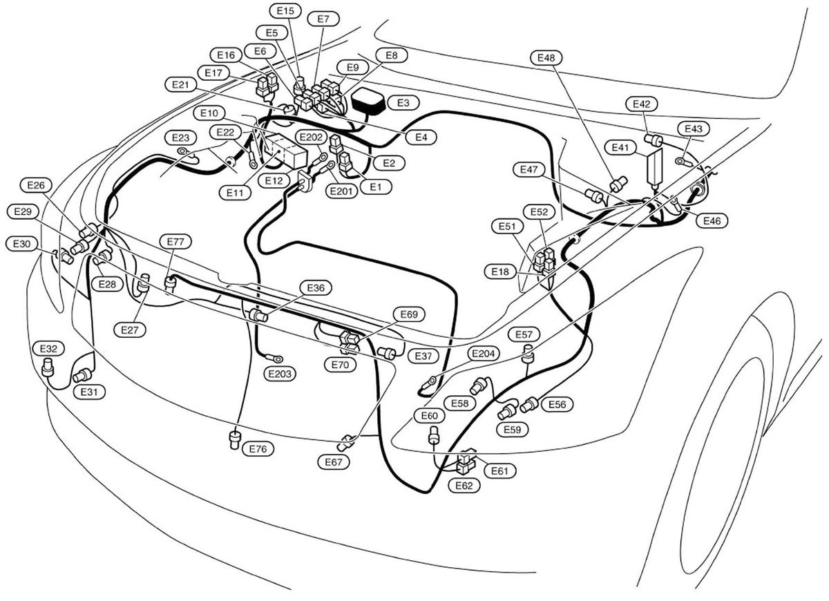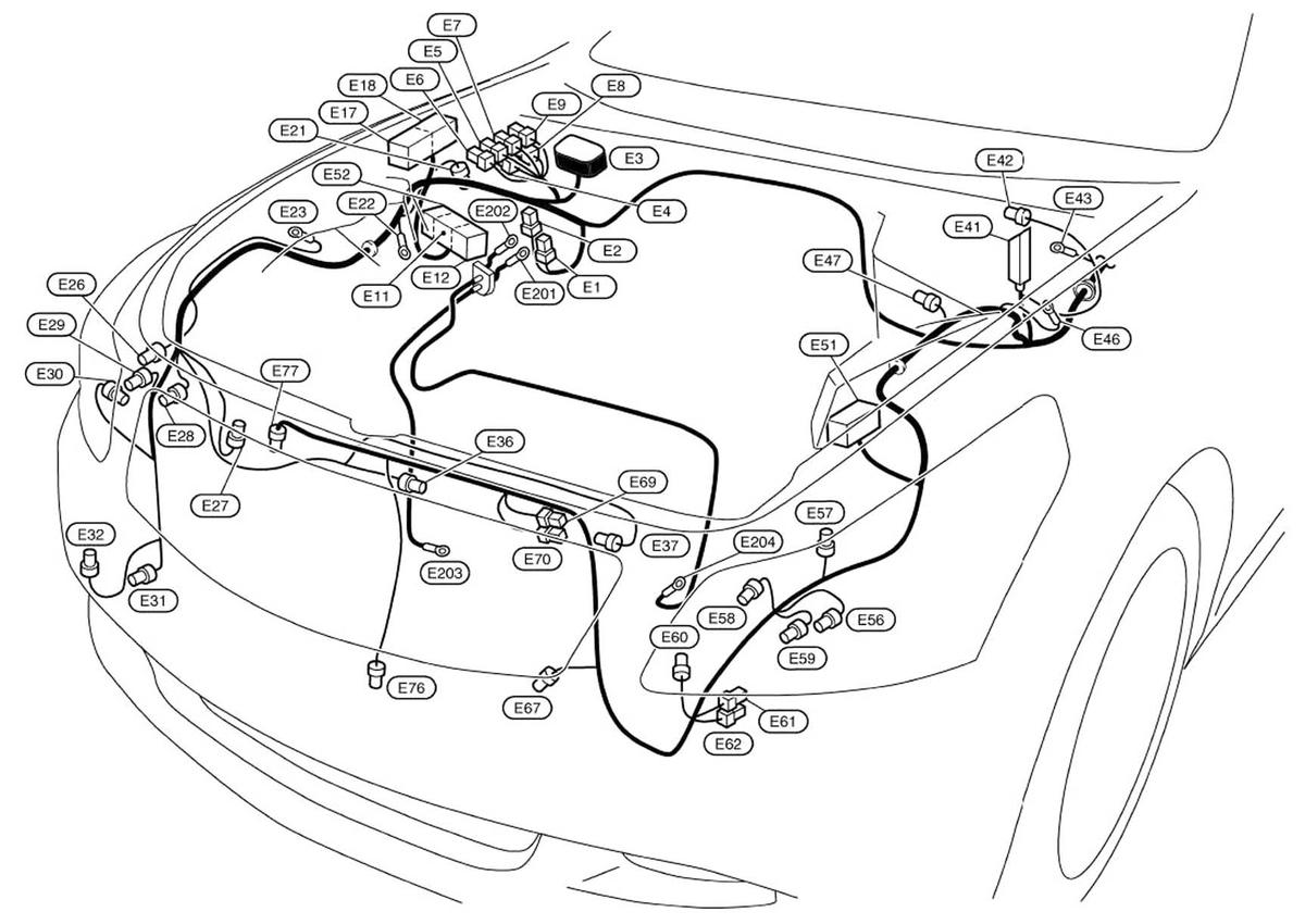 ABS Actuator & Electric Unit (Control Unit) (Coupe) (E41) Left rear of engine compartment. See Figure.