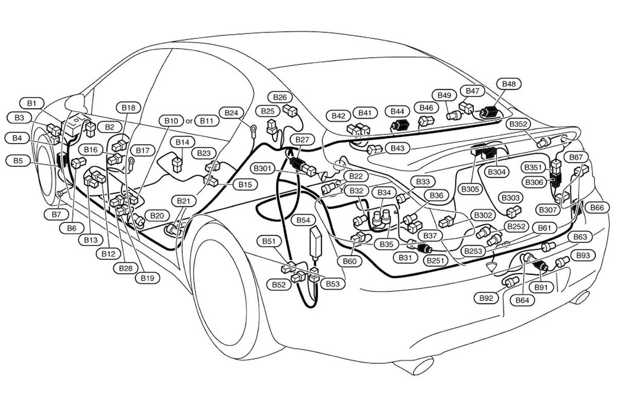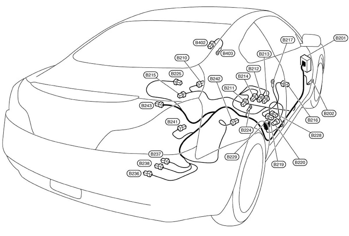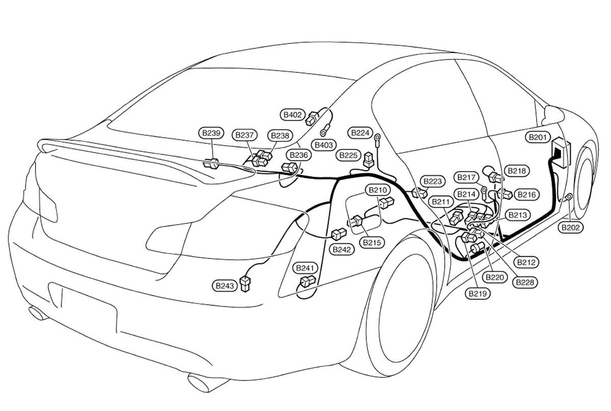 Camera Control Unit (Sedan) (B241) Right side of luggage compartment. See Figure.