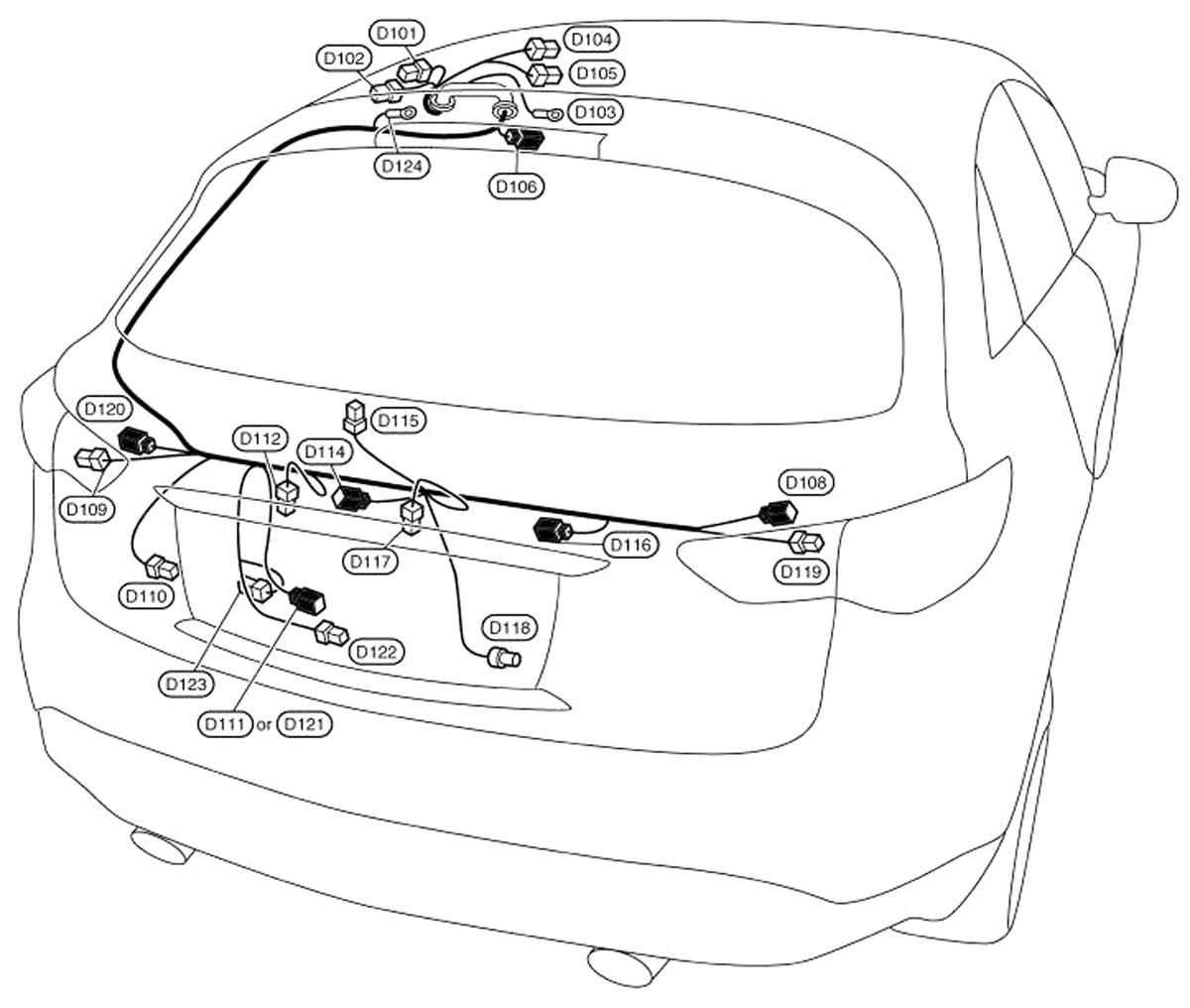 | Back Door Control Unit (D123) | Lower left side of back door. See Figure. |