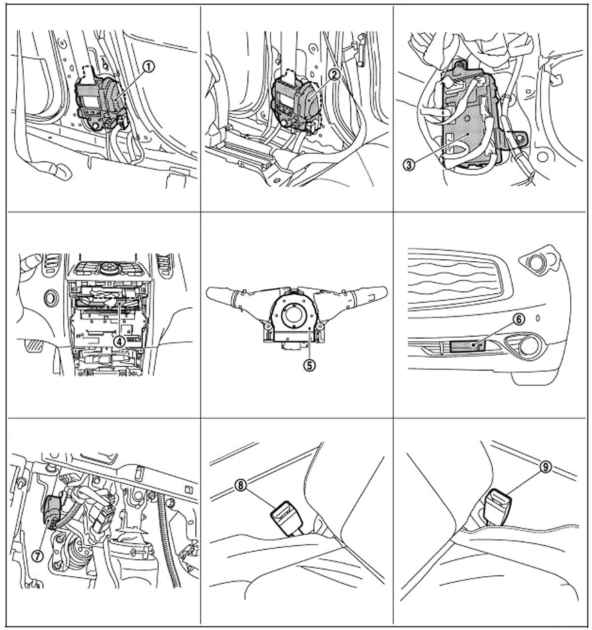 | Pre-Crash Seat Belt Control Unit (Passenger Side) (2) | Base of right "B" pillar. See Figure. |