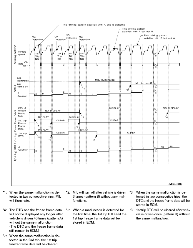 - The B counter will be cleared when the malfunction is detected once regardless of the driving pattern.