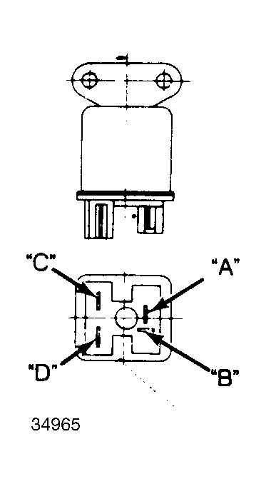 On I-Mark and P'UP models, there should be no continuity across terminals "C" and "D". With battery voltage applied to terminal "A", and terminal "B" grounded, there should be continuity across "C" and "D". If not, replace relay. See Fig 1 .