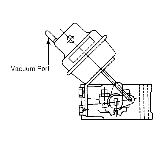 Apply vacuum to vacuum supply tube at top of vacuum diaphragm. Diaphragm should not "leak down" and should move to full turn position at 7.9 in. Hg. See Figure .