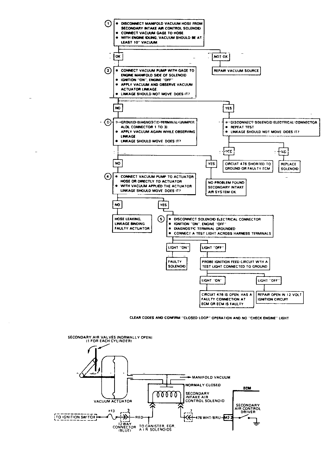 - With diagnostic terminal grounded, ECM should ground circuit No. 476 which should energize solenoid and allow vacuum to pass to actuator.