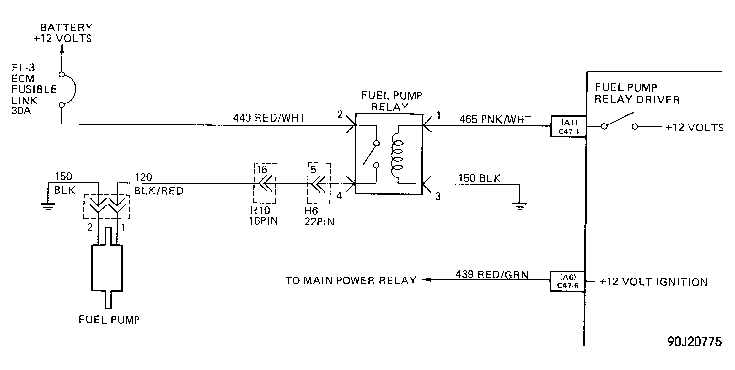 - ECM powers relay as long as ECM receives ignition reference signals or starter crank signal. For fuel pump relay location, see FUEL PUMP RELAY LOCATION table.