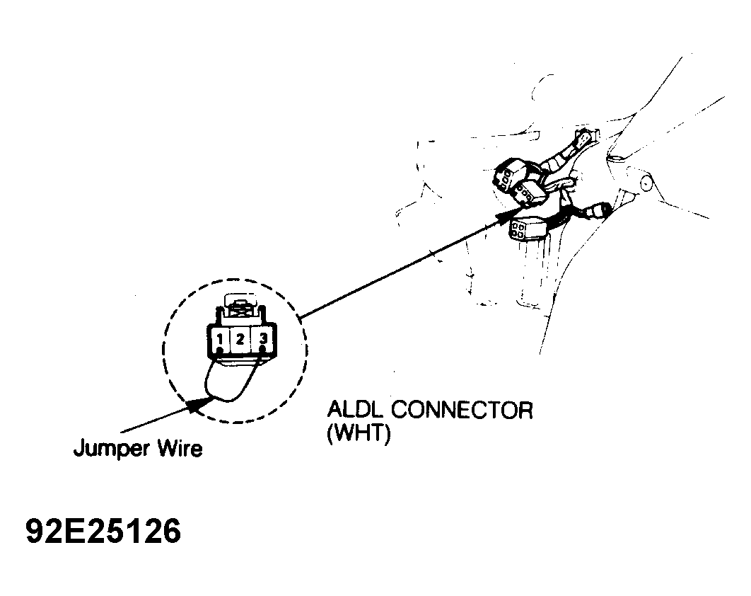 - To retrieve codes, install a jumper wire between terminals "1" and "3" of ALDL diagnostic connector. ALDL diagnostic connector is located behind center console to right of accelerator pedal. See Fig 1 .