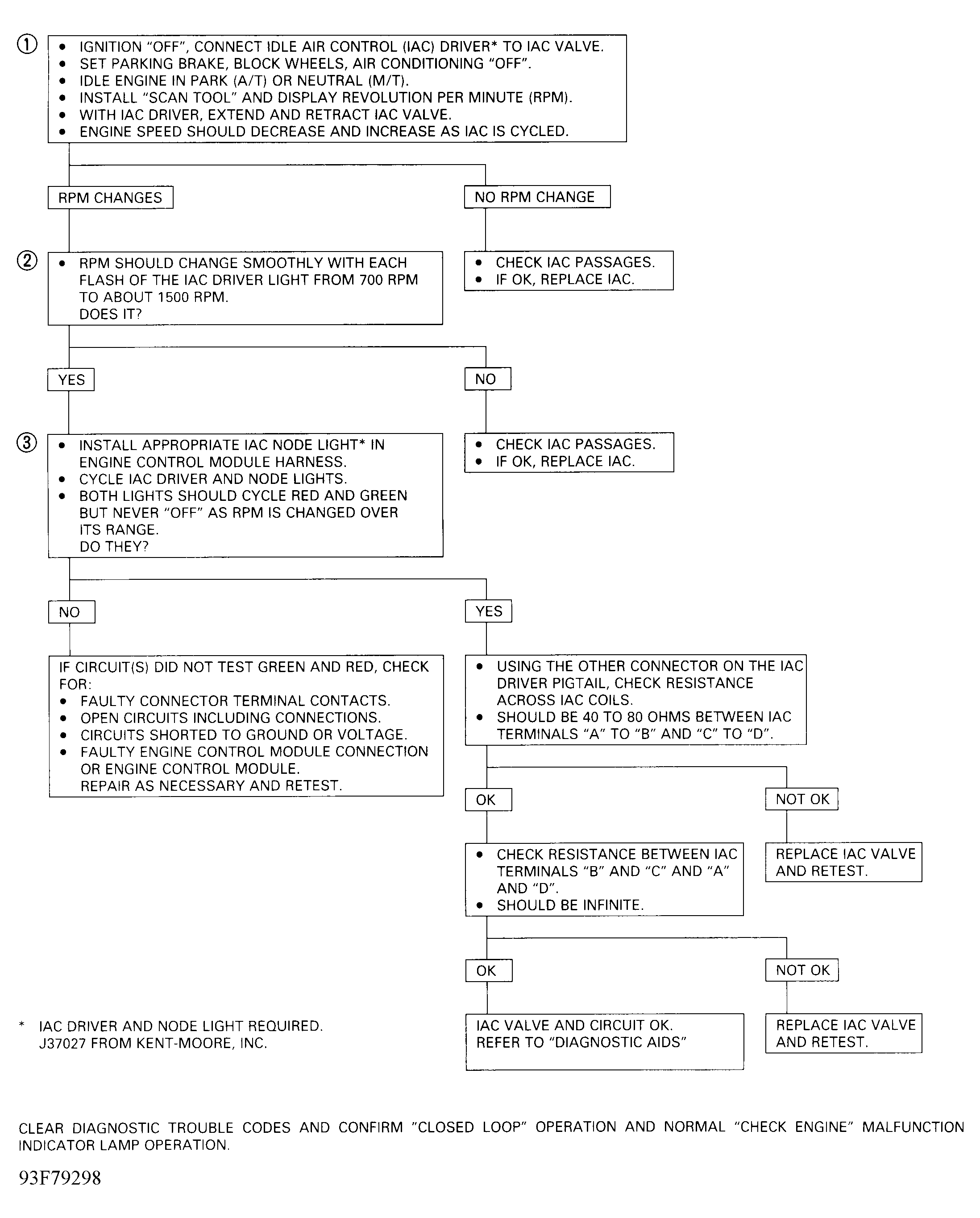 - Using ohmmeter, check continuity across terminals No. 1 and 4 and across terminals No. 2 and 3. Replace IAC valve if continuity exists. If IAC valve tests okay, check for faulty connections at IAC valve and ECM. If connections are okay, check input devices used by ECM to control IAC valve operation. See Figure and Figure .