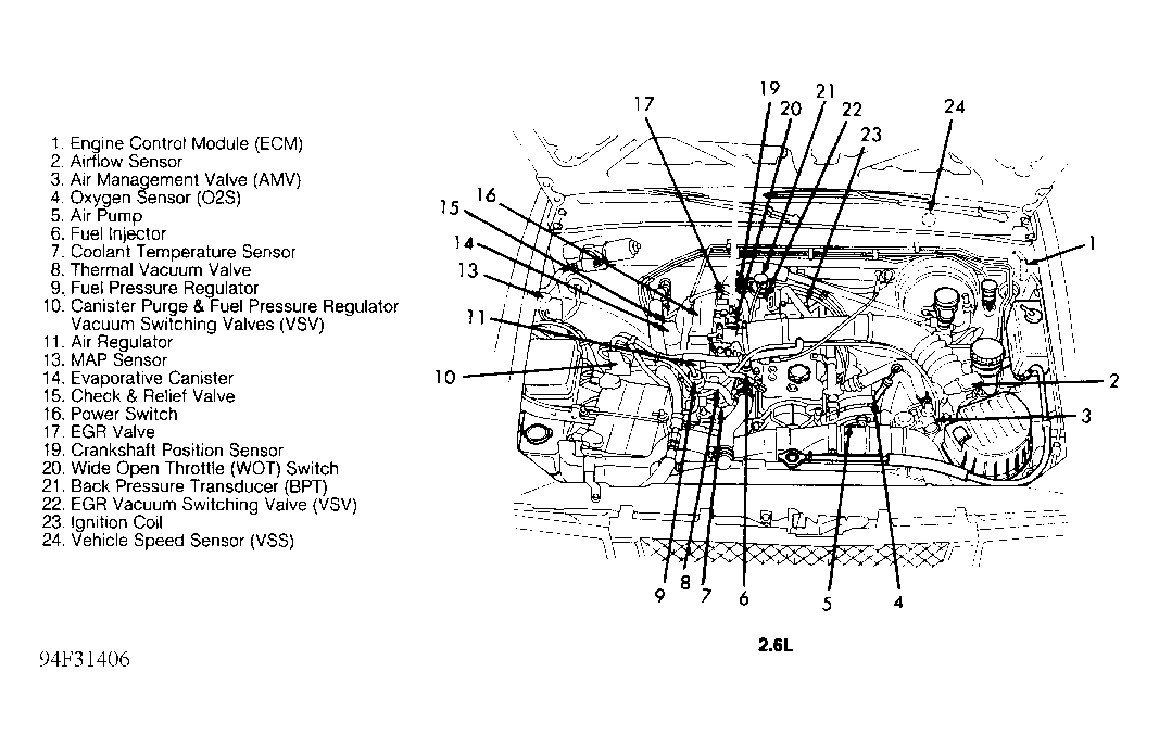 | Engine Control Module (ECM) (2.6L) | Behind left kick panel. See Figure . |
