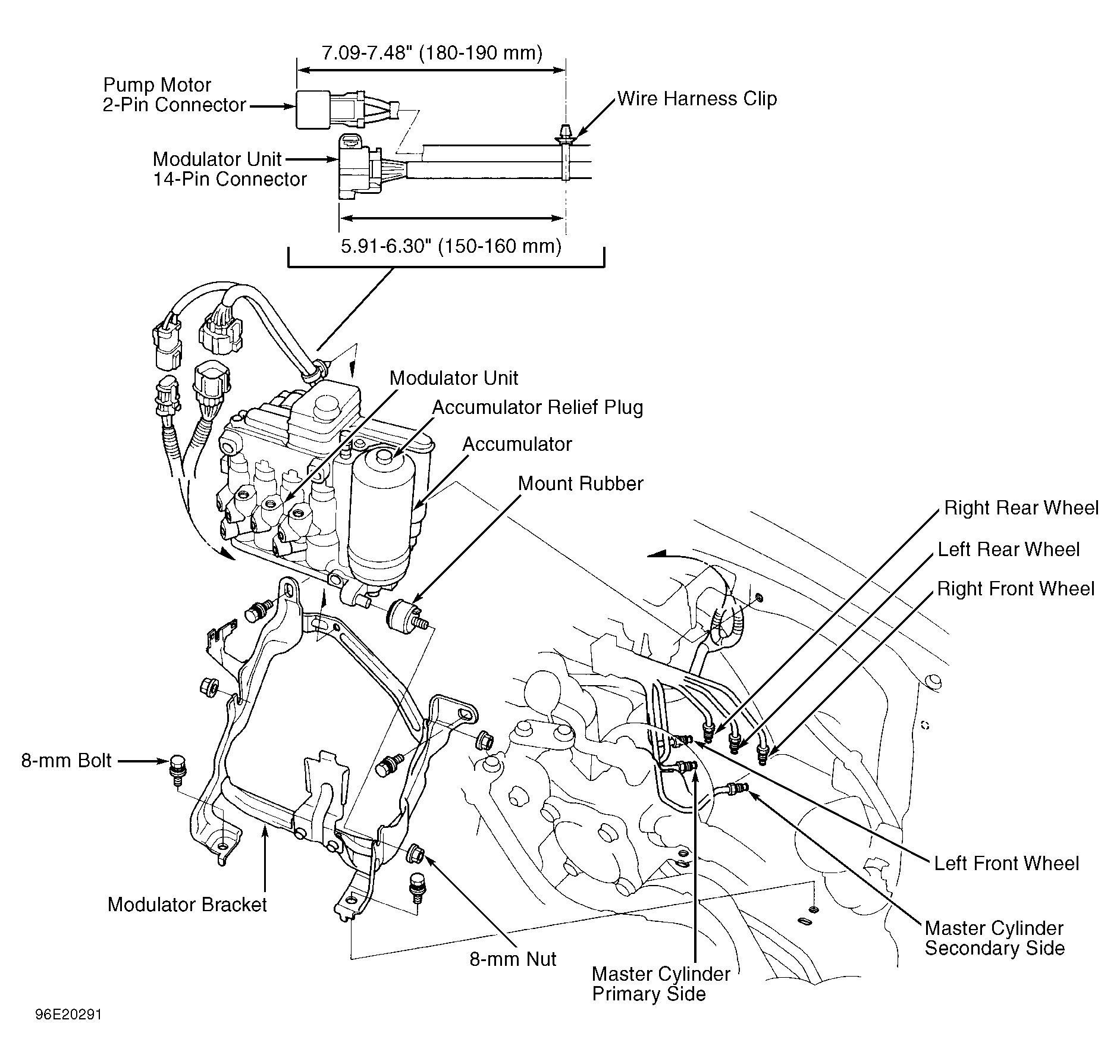 - Ensure brake fluid level in reservoir is to MAX level. Slowly tilt modulator unit suction port upward, about a 45-degree, to bleed air from suction port. To complete installation, reverse removal procedure.