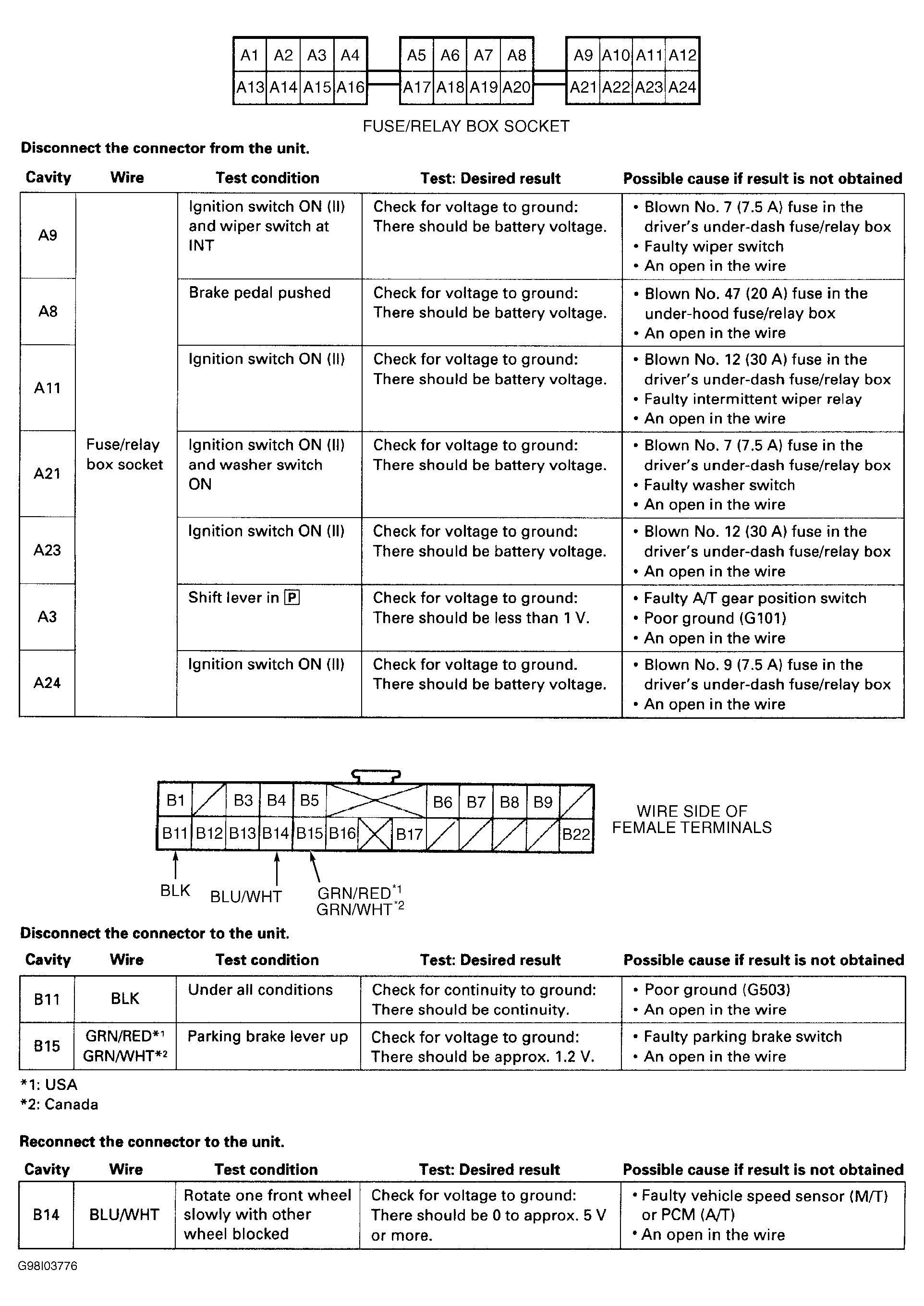 - Remove driver's multiplex control unit from underdash fuse/relay box. Ensure connector and socket terminals are okay. Repair as necessary and retest system. If connector and terminals are okay, using a DVOM, perform control unit input test as indicated. See Fig 1. If an input test indicates a problem, find and correct cause and retest system. If all input test results are okay, replace faulty multiplex communications control unit.
