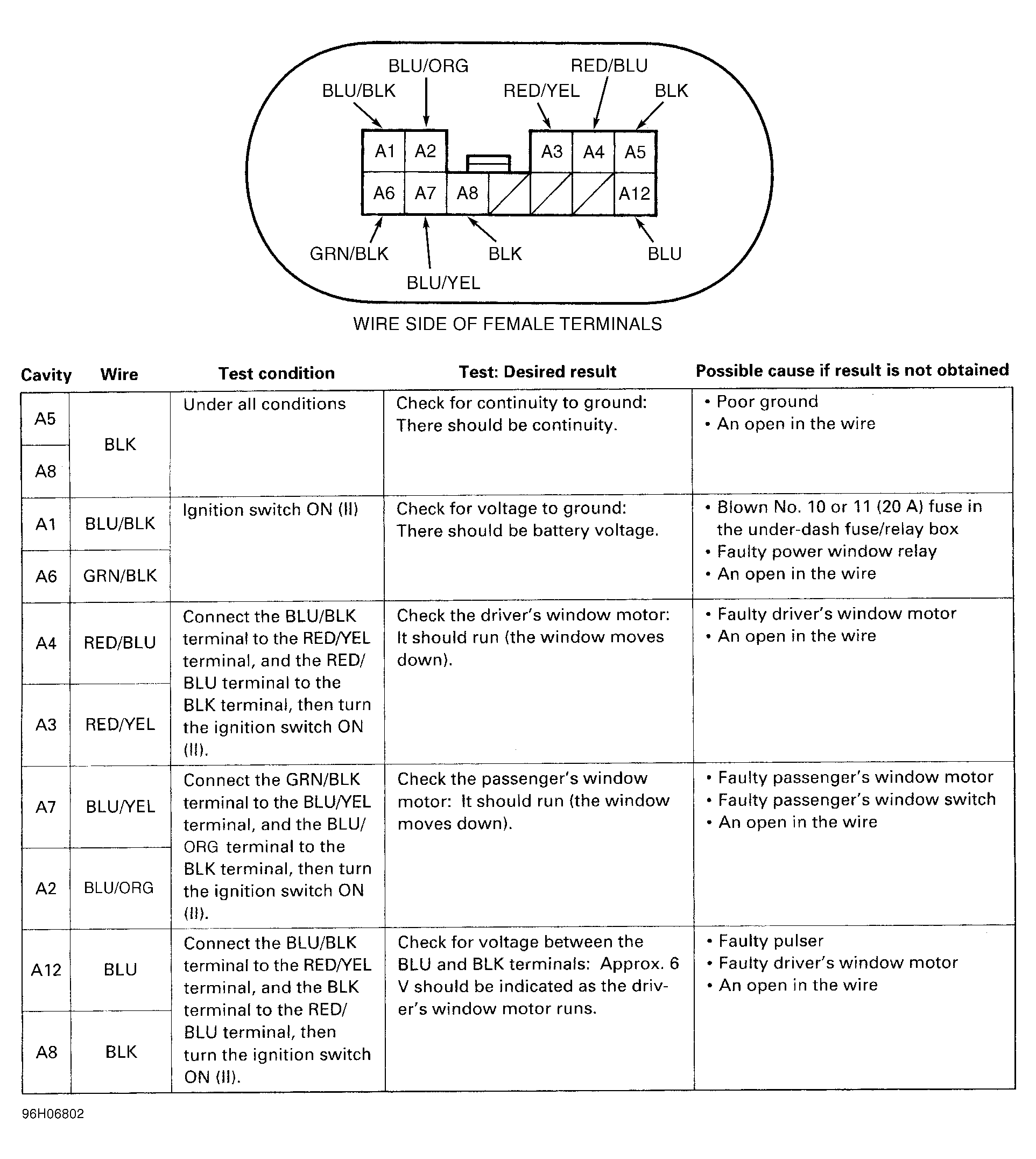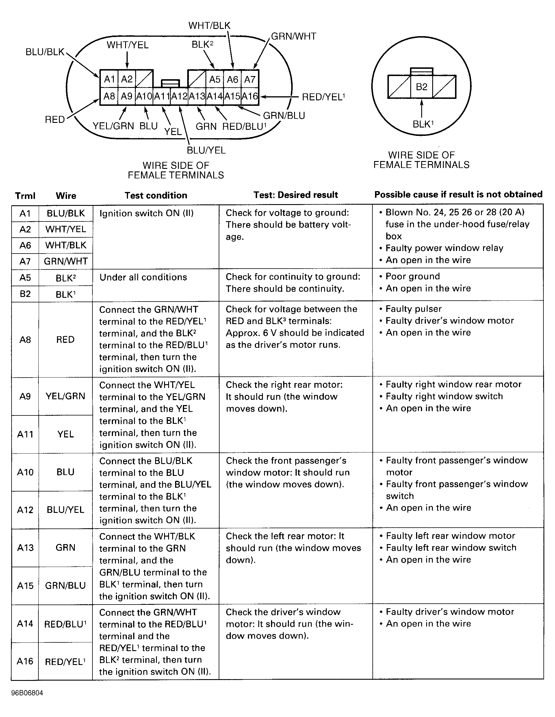 POWER WINDOW MASTER SWITCH TEST (CIVIC COUPE & HATCHBACK)