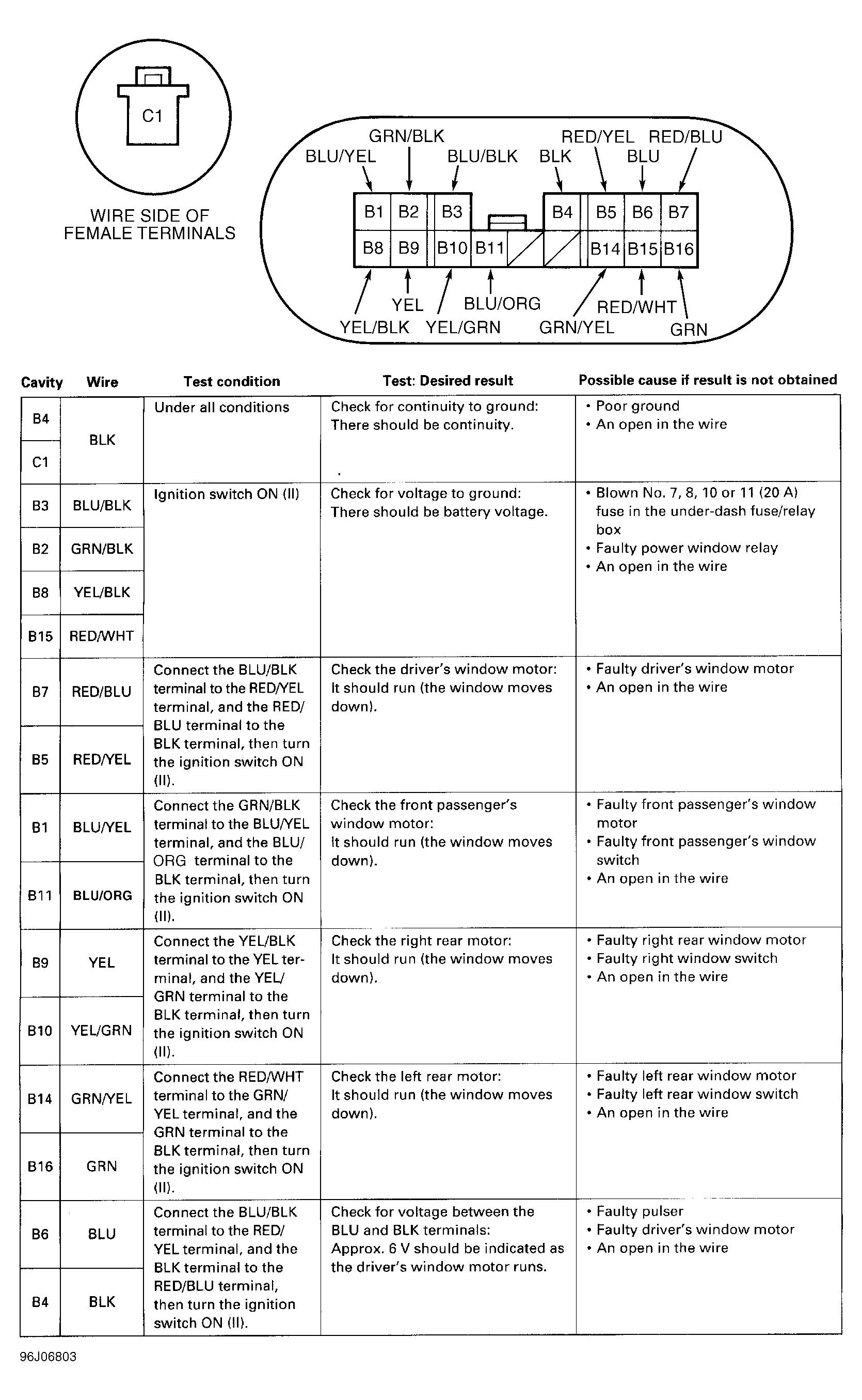 POWER WINDOW MASTER SWITCH TEST (CIVIC SEDAN)