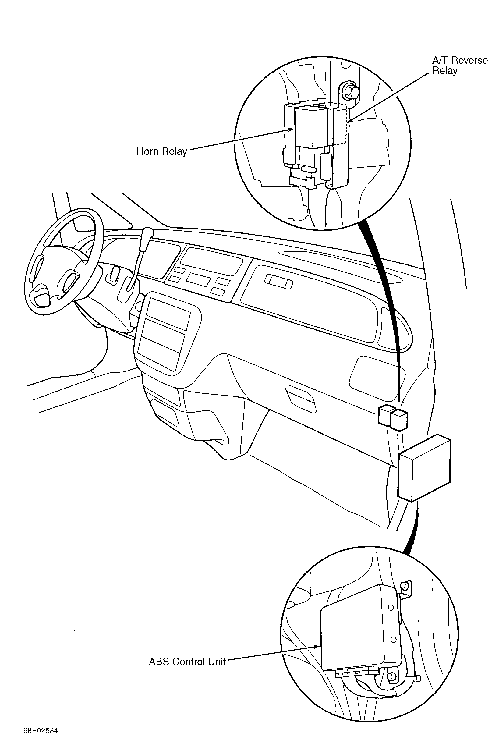 | ABS Control Unit | Behind right kick panel. See Figure . |