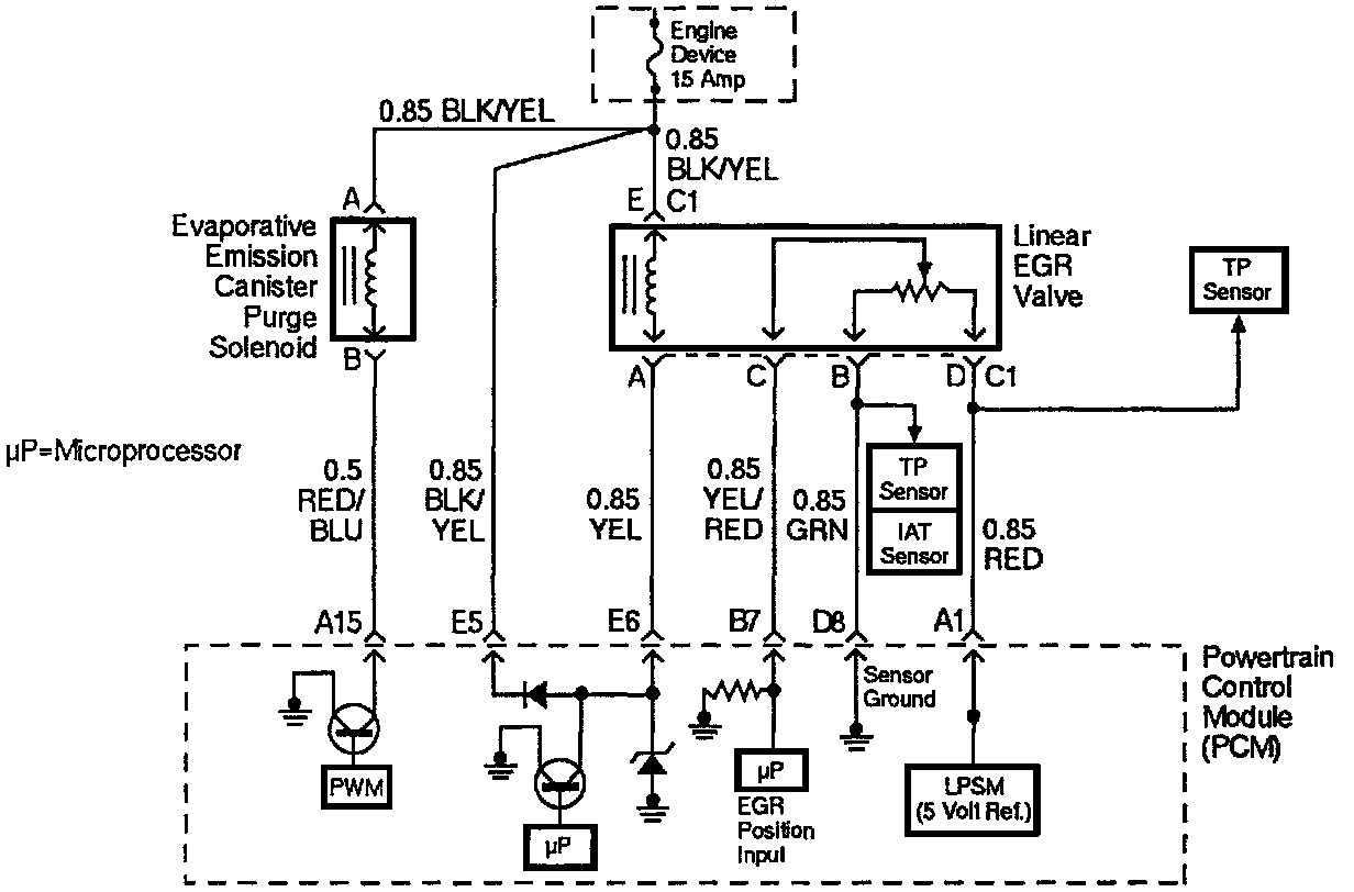c. Using a test light to ground, check the EGR harness between the EGR valve and the ignition feed.