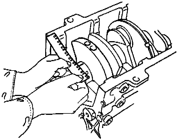 NOTE: Measure the plastigage width and determine the oil clearance. If the oil clearance exceeds the specified limit, replace the main bearings as a set and/or replace the crankshaft.