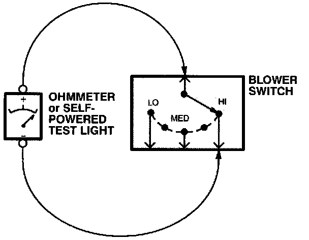 3. Connect one lead of self-powered test light or ohmmeter to one end of the part of the circuit you wish to test.