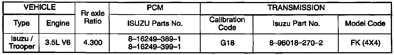 The chart above contains a list of all important information concerning rear axle ratio, Powertrain Control Module (PCM) and transmission identification.