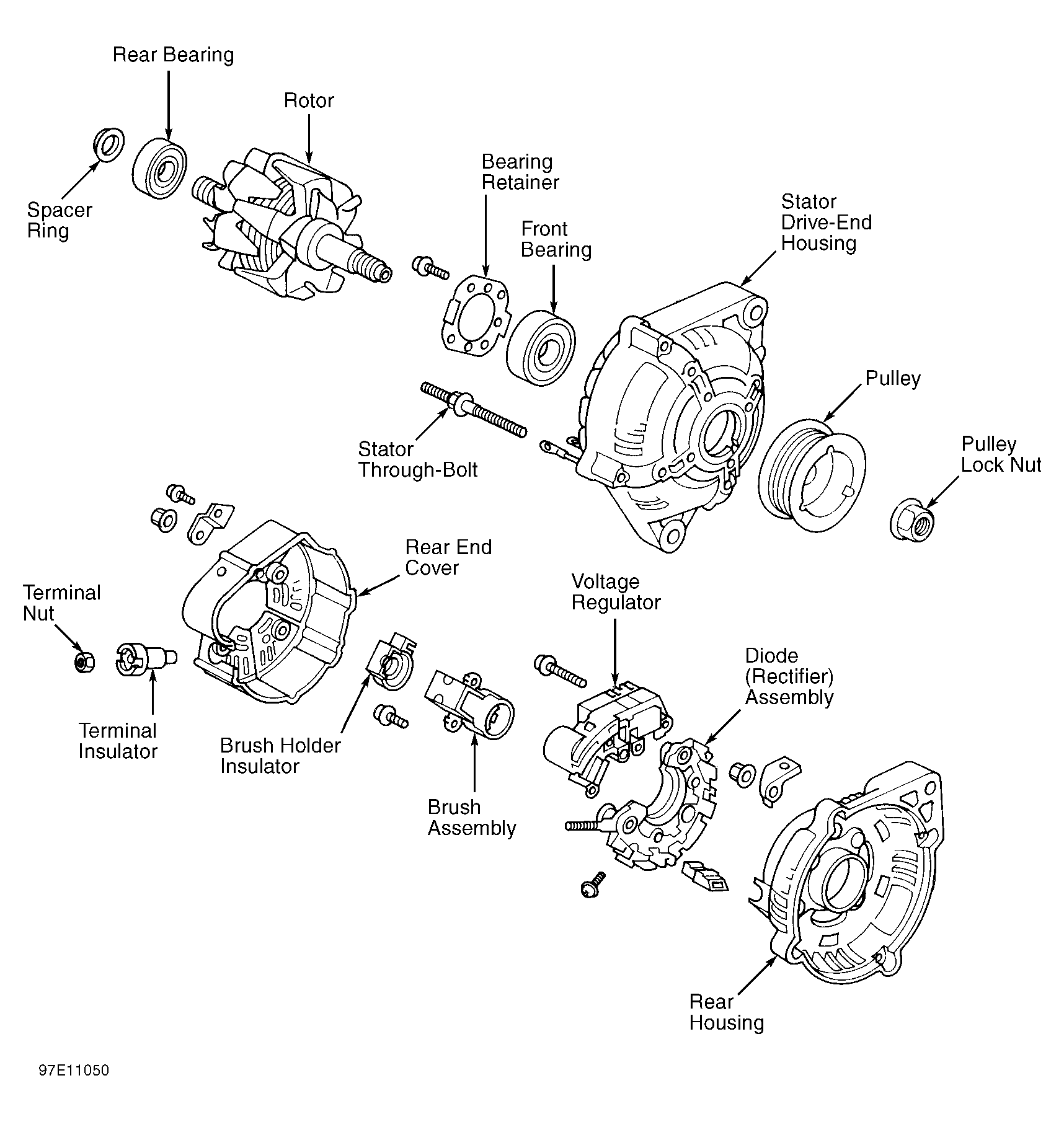 For overhaul, see exploded view of generator. See