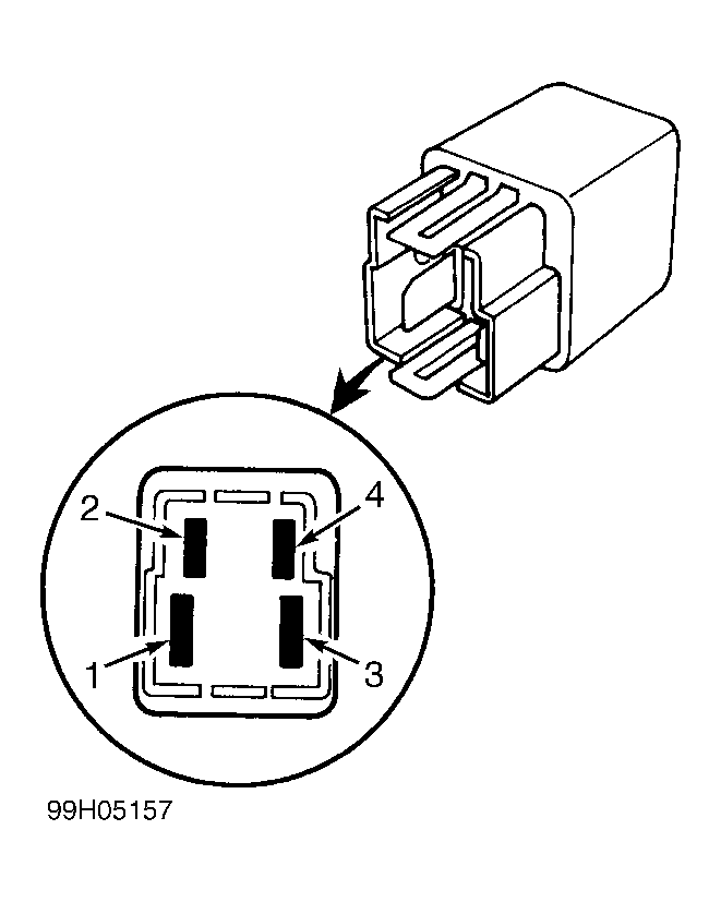 - Locate and remove starter relay from vehicle. Connect power and ground to relay terminals No. 2 and 4. See Fig 1 . Ensure continuity exists between relay terminals No. 1 and 2.