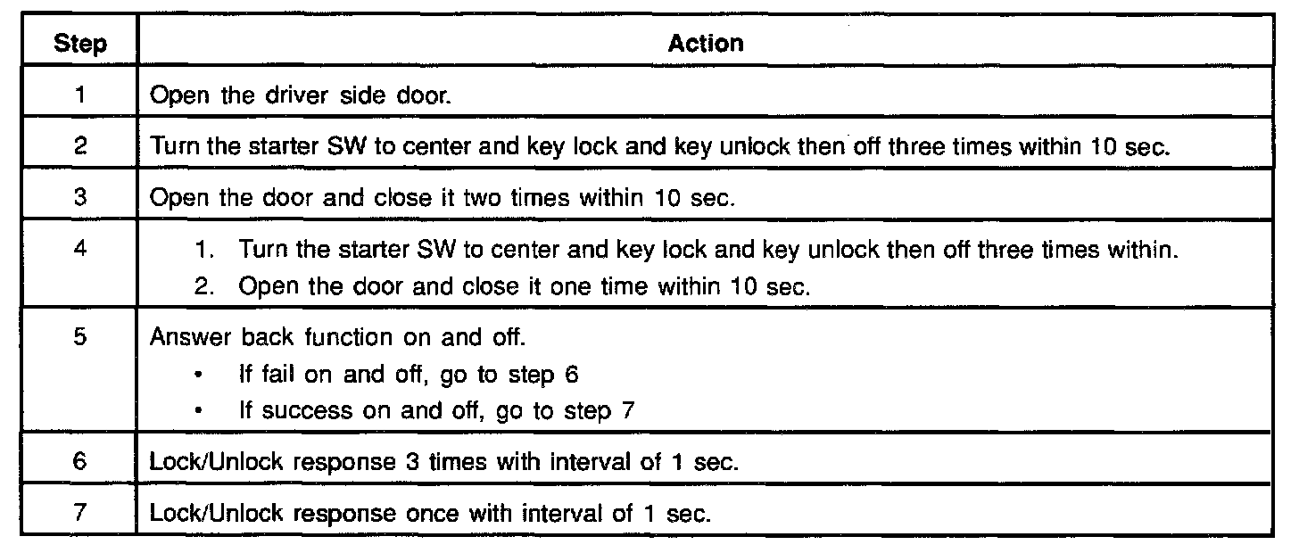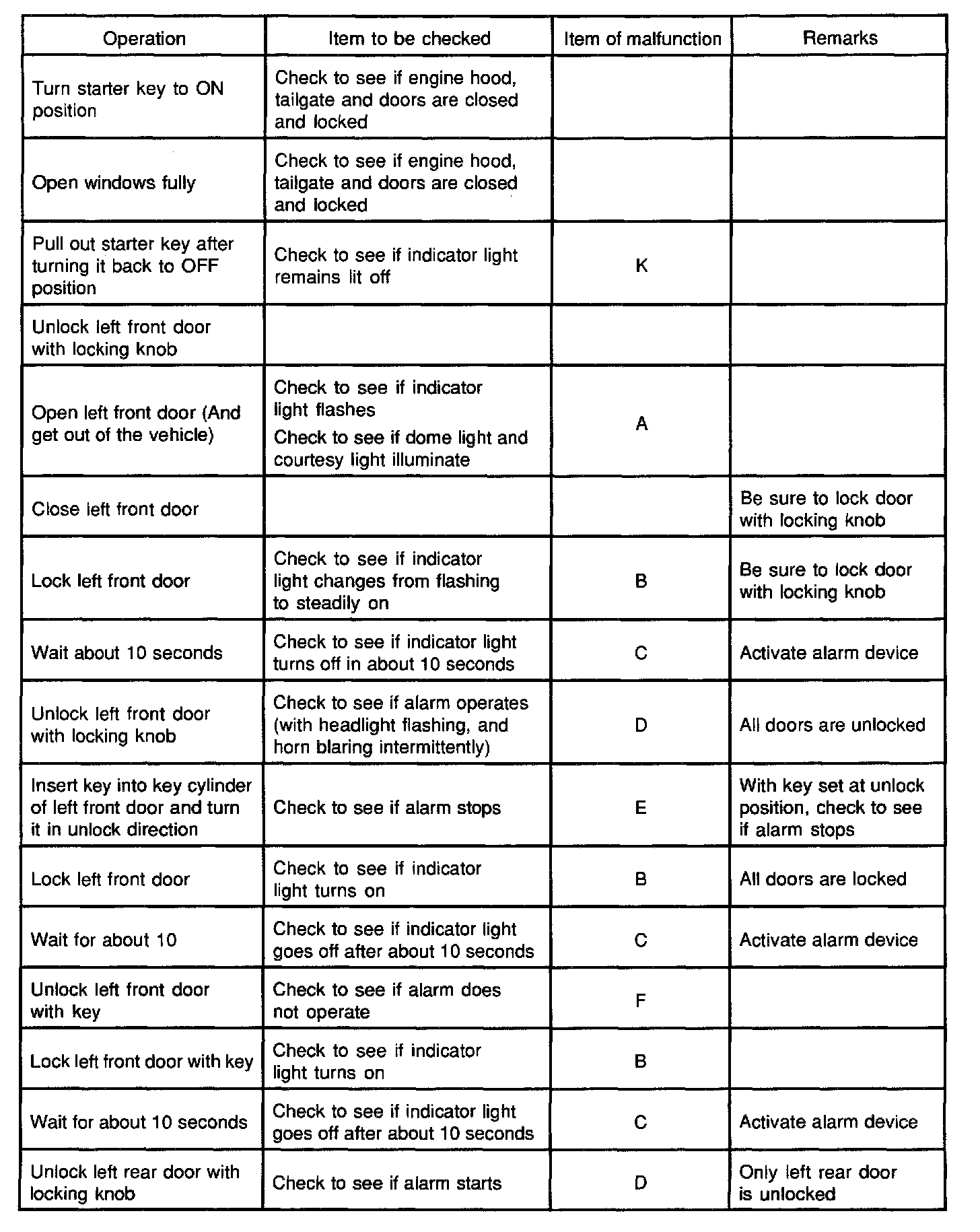 NOTE: When the connector of the anti-theft controller is disconnected, the starter is inoperative. In the checking of short wheel base model, step Nos 16 through 21 and step Nos. 31 through 36 are omitted.
