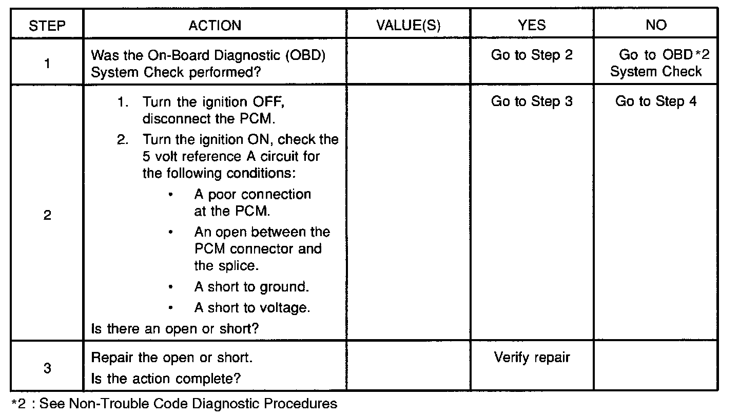 A short to ground in the 5-volt reference A or B circuit will cause one or more of the following DTCs to be set:
