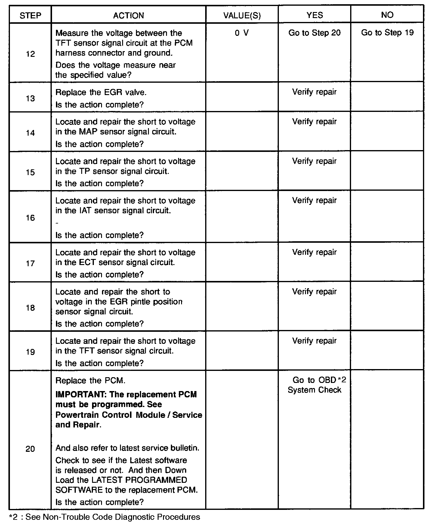 IMPORTANT: If a sensor input circuit has been shorted to voltage, ensure that the sensor is not damaged. A damaged sensor will continue to indicate a high or low voltage after the affected circuit has been repaired. It the sensor has been damaged, replace it.