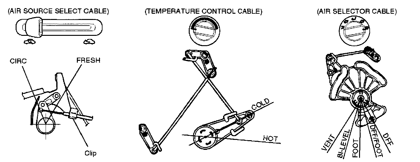 2. Connect the control cable at the DEFROST position of the mode control link of the heater unit and secure it with the clip.