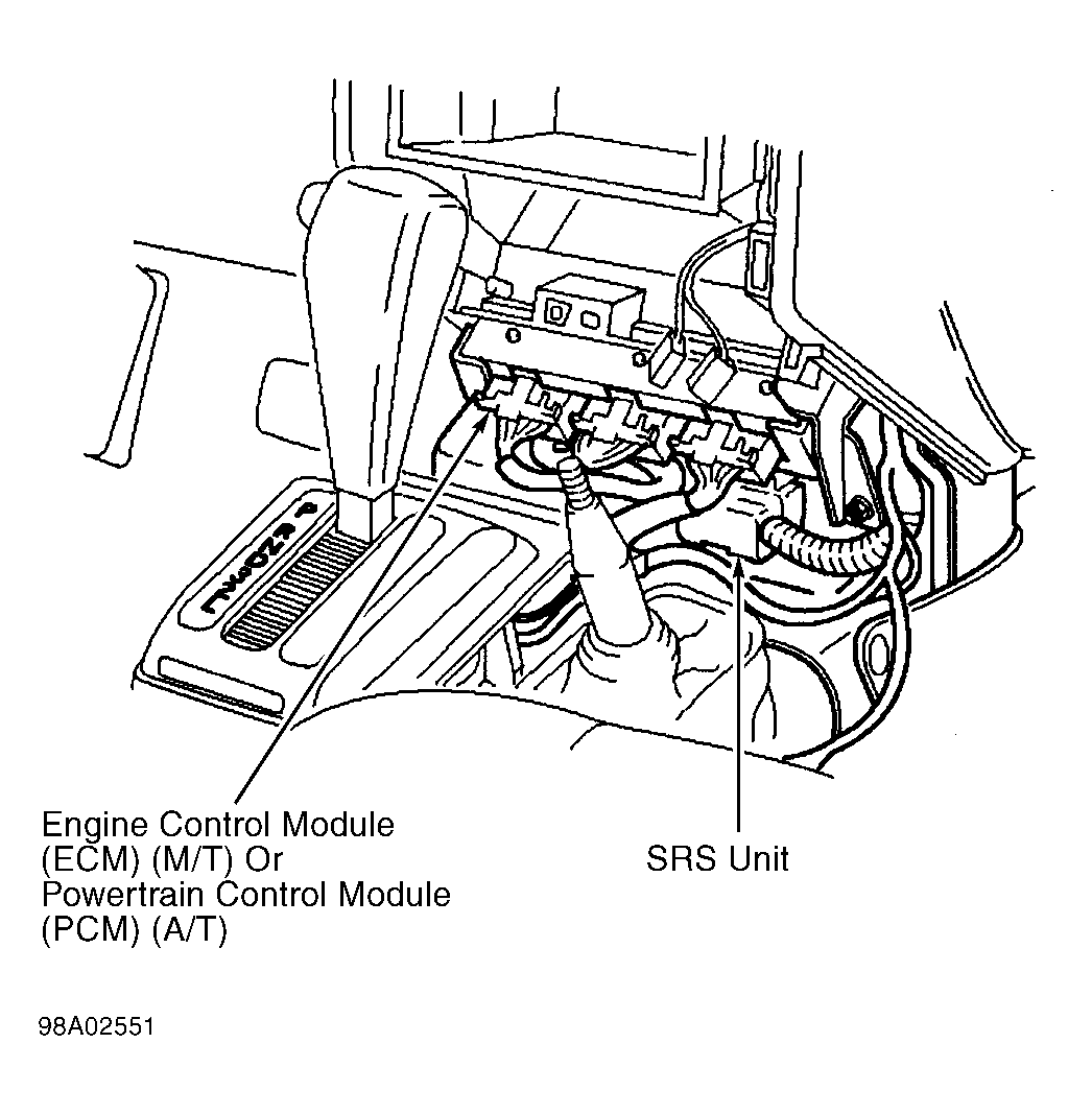 | Engine Control Module (ECM) (M/T) | Behind center of dash, below radio. See Figure . |