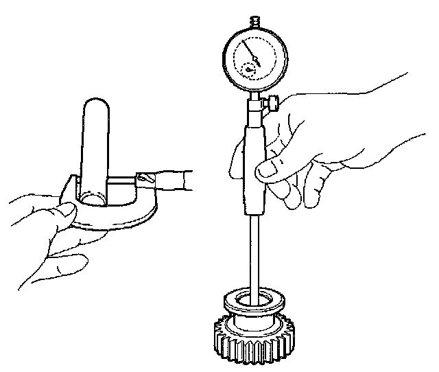 3. If the clearance exceeds the maximum, measure the gear inside diameter and shaft diameter.
