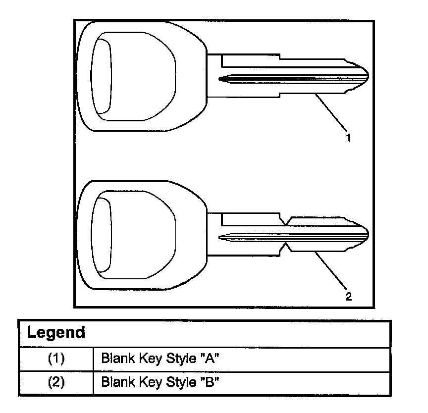 The keys come in styles A or B depending on the key code cutting combination. When the first position in the combination is a 1, 2 or 3, Style A is used. When the first position is a 4, Style B (factory pre-cut key) is used.