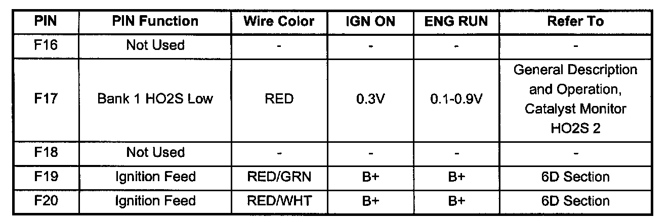 PCM Pinout Table, 80-Way Blue Connector - Row "F1 - 20" (F16 To F20):