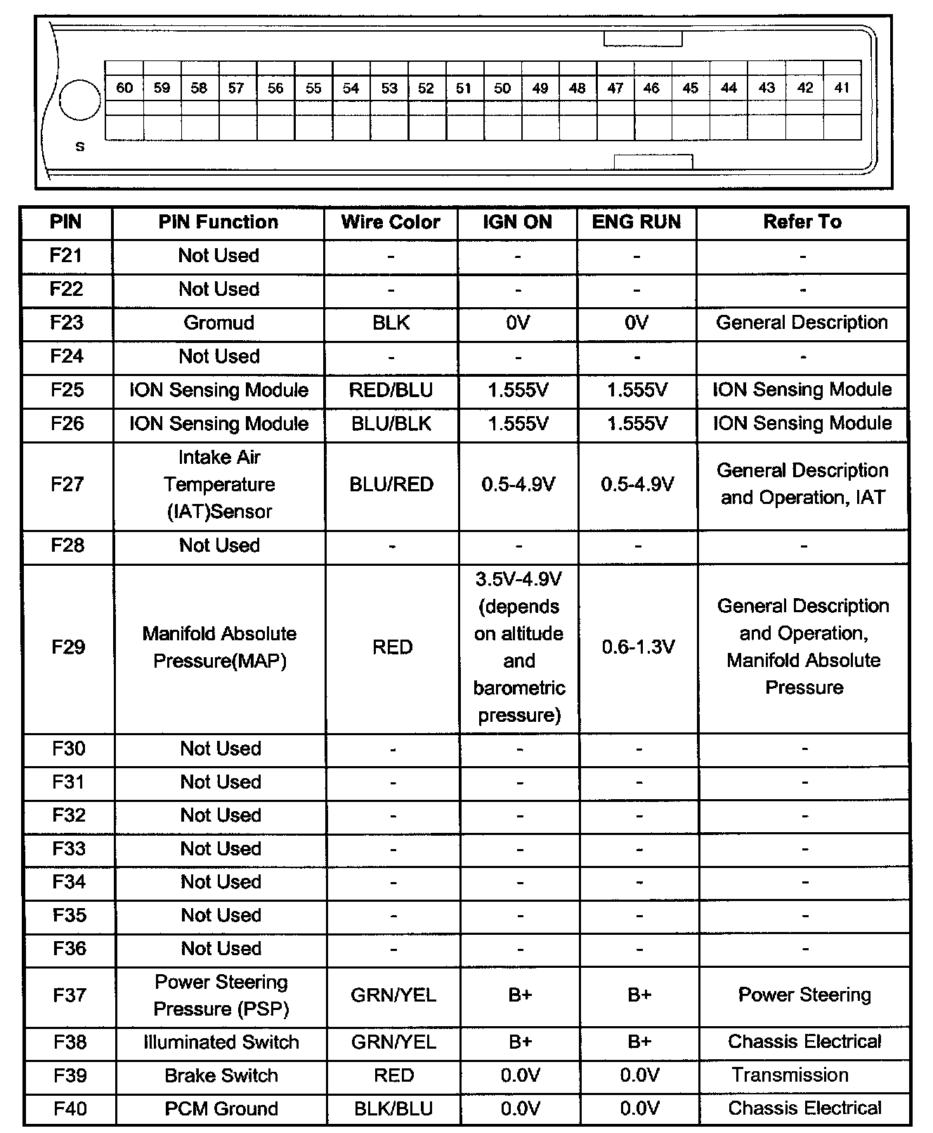 PCM Pinout Table, 80-Way Blue Connector - Row "F20 - 40" (F21 To F40):