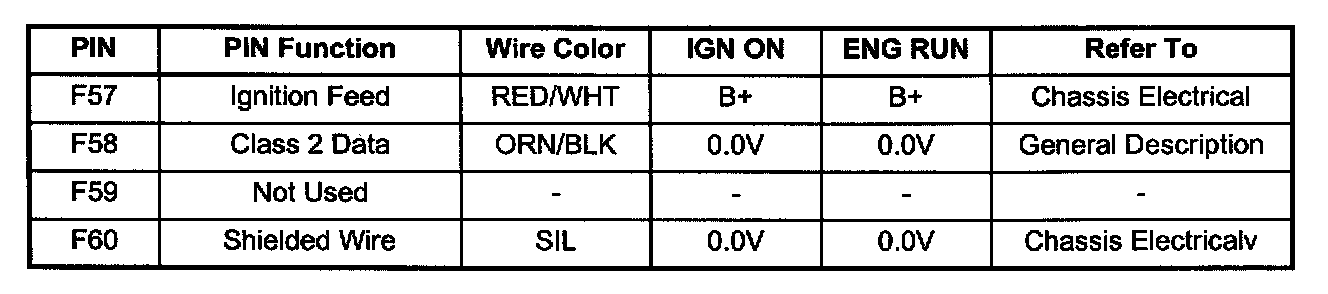 PCM Pinout Table, 80-Way Blue Connector - Row "F41 - 60" (F57 To F60):