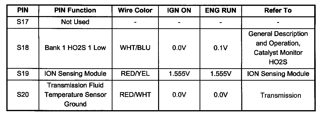 PCM Pinout Table, 80-Way Red Connector - Row "S1 - 20" (S17 To S20):