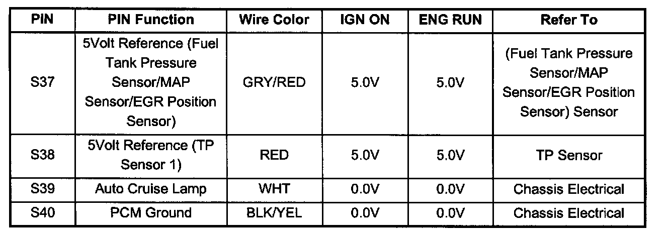 PCM Pinout Table, 80-Way Red Connector - Row "S21 - 40" (S37 To S40):