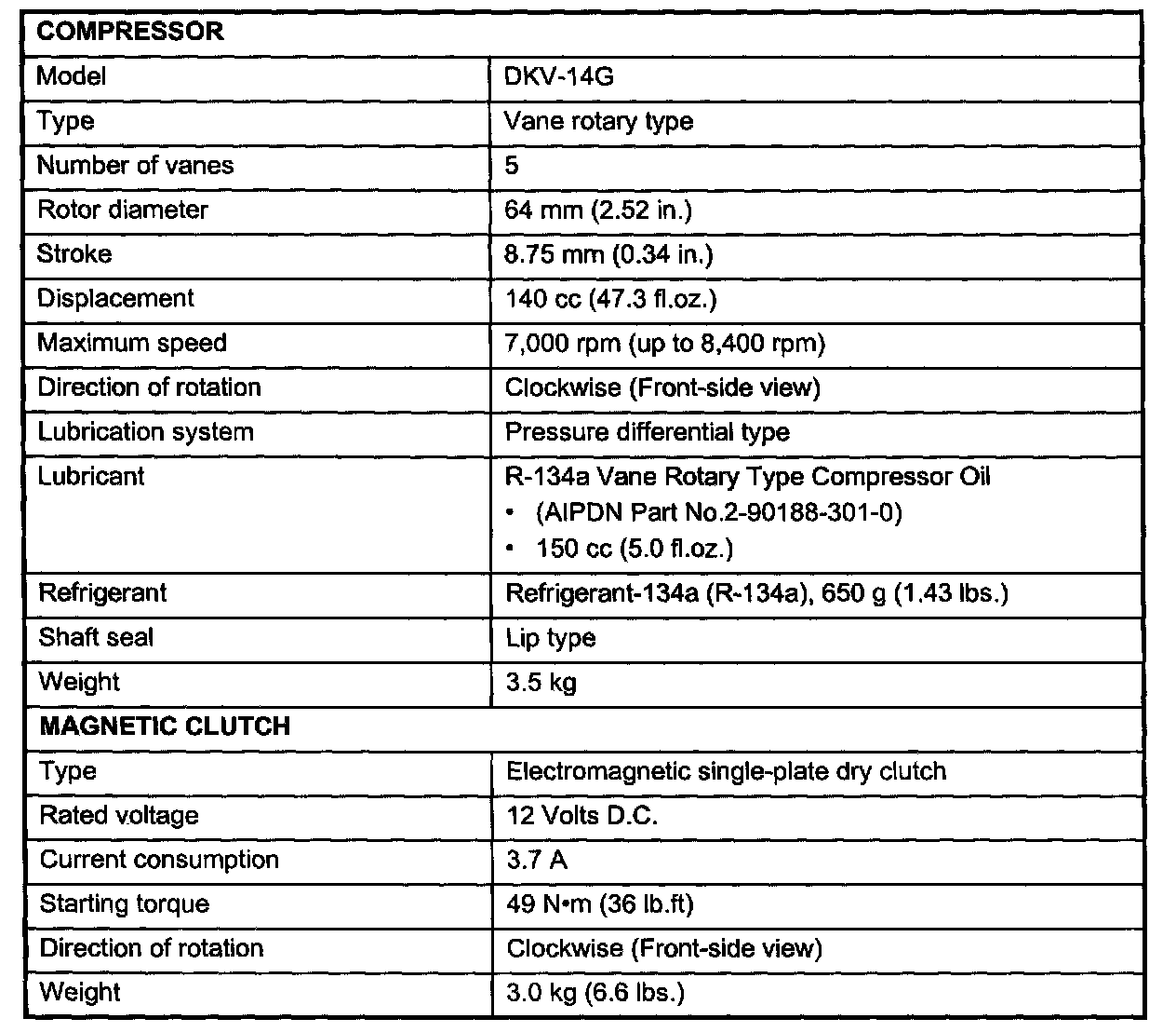 Compressor HVAC: Specifications